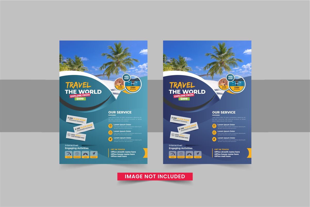 Modern travel flyer or travel agency poster template design layout. All type of Corporate business company, agricultural Company, Home Sale, Land Sale or other property selling company could use this Modern travel flyer or travel agency poster template design layout