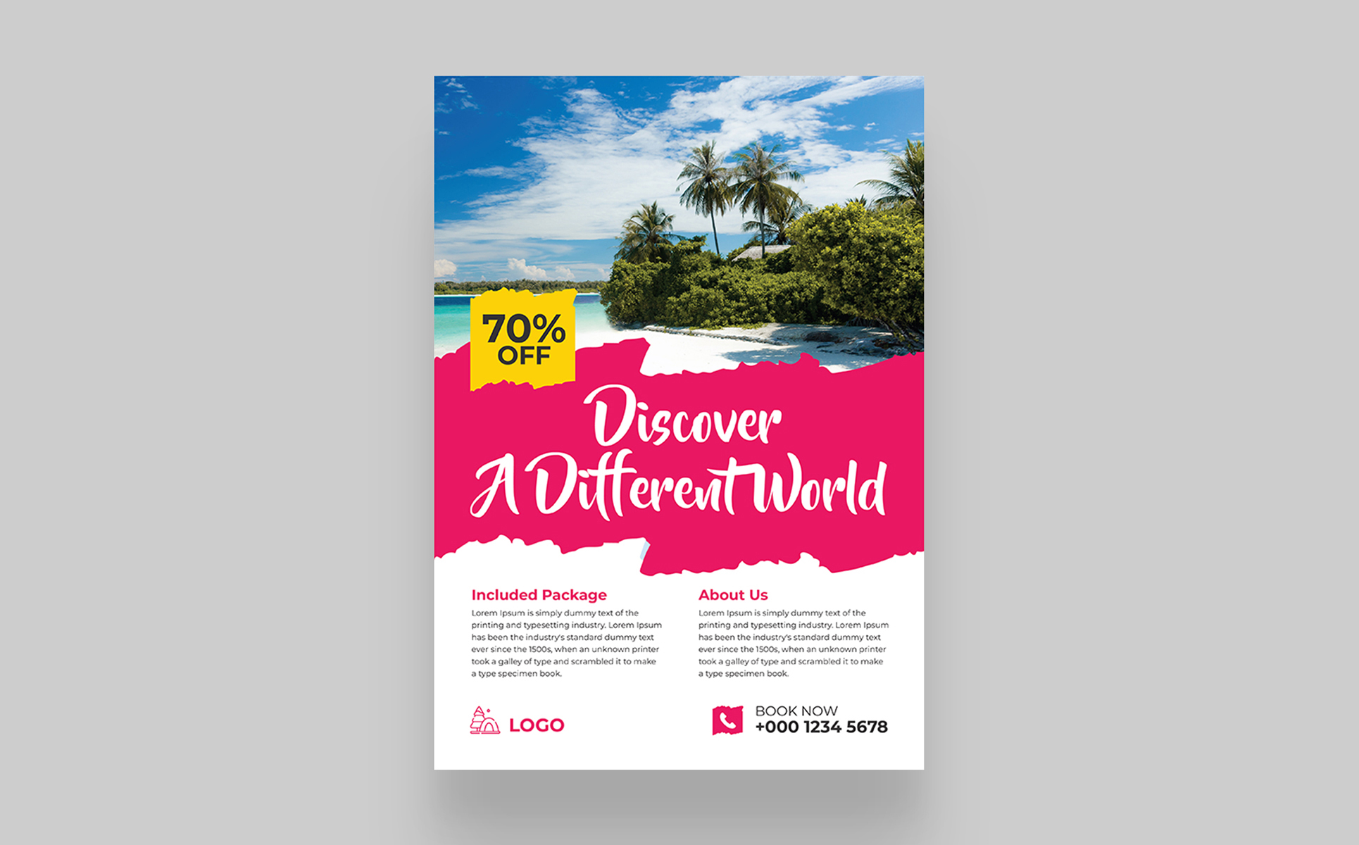 This template download contains illustrator vector files. All elements are editable and customizable. This flyer is great for a Travel company. Which you can easily edit. These flyers will help you promote your company.