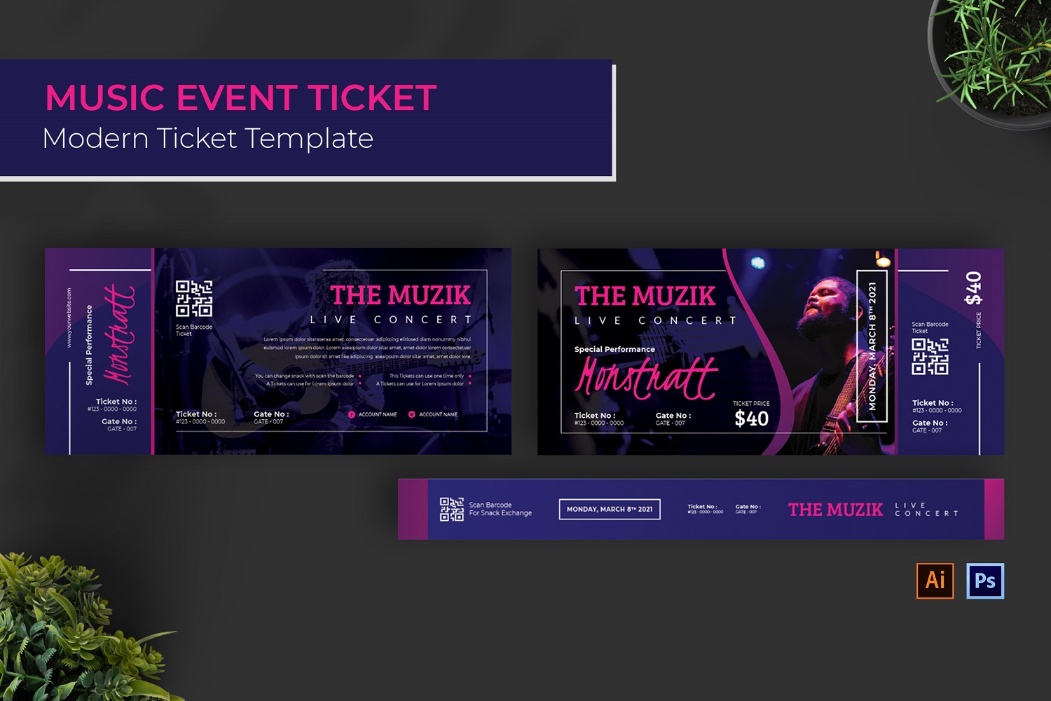 This Ticket template has fully editable and customizable PSD and AI files. This Ticket Set template also has creative style, and it's suitable for your any purpose such as: businesses, corporate, agency and can be also used for any other publishing like marketing promotions and company profile.