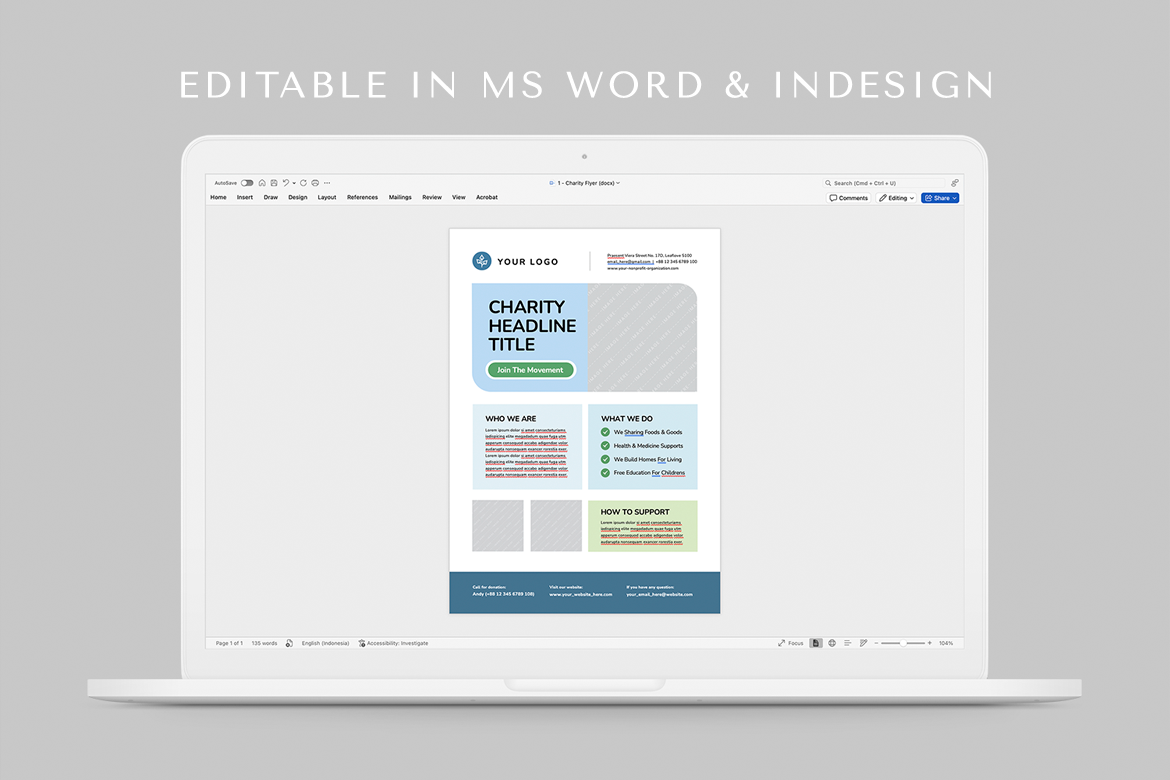 • This document is editable in microsoft word & adobe indesign only. It will not work in pages, google docs, adobe photoshop or other program. Please make sure you have the proper software before editing this item.