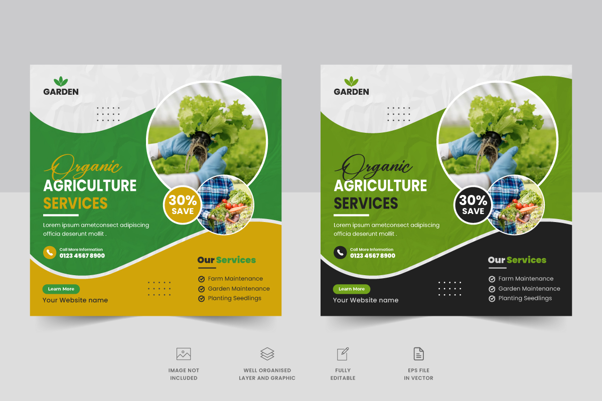 Agriculture farming services social media post banner or Agro farm services social media web banner template design. Lawn mower gardening or landscaping, Agro business, Combine harvester banner. This template is very easy to use and flexible. You can edit the text & transform each element easily, have total freedom for your creativity, and save more of your time.