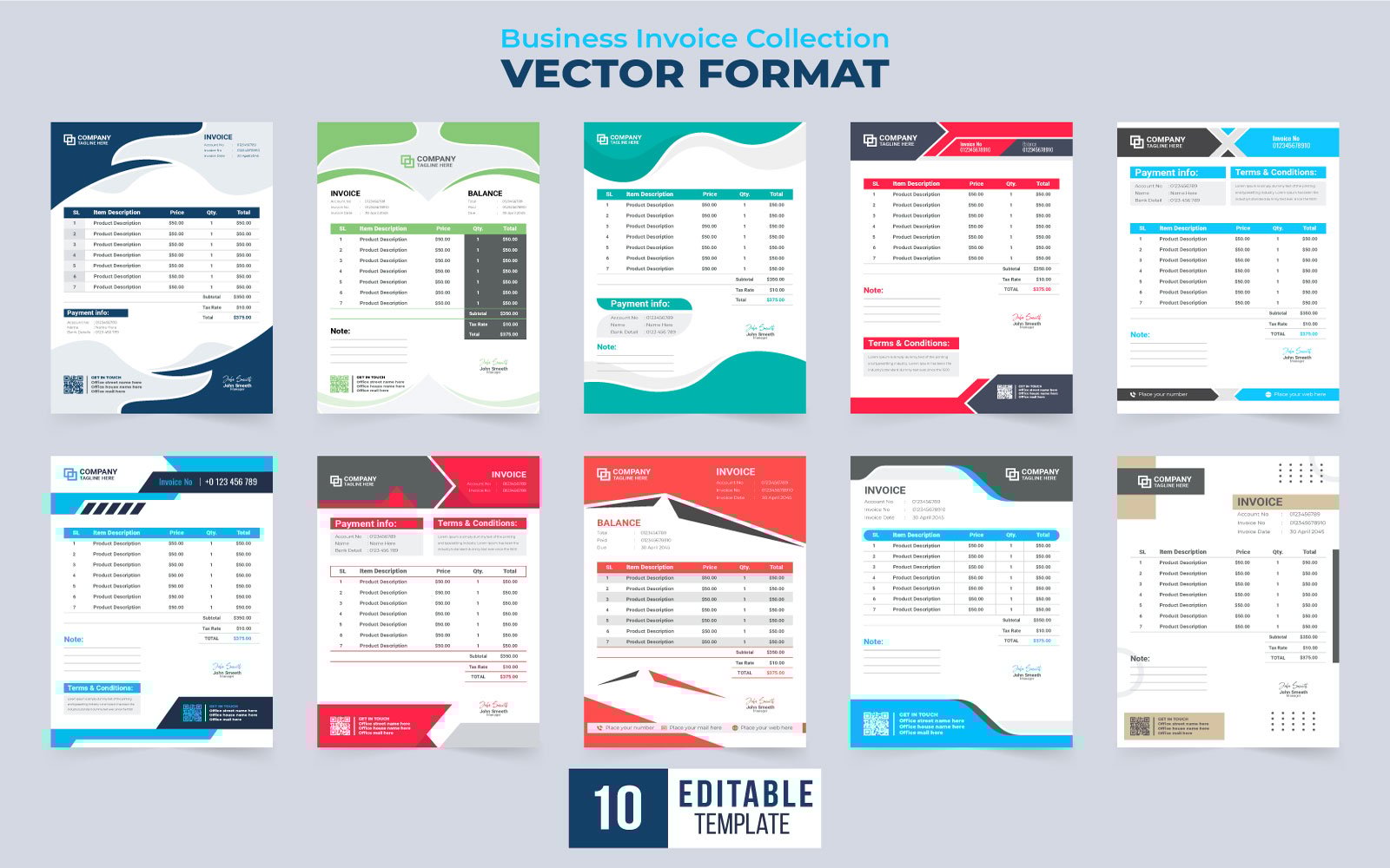 Payment receipt invoice template set. Product order and purchase agreement invoice bundle for corporate business. Payment receipt and minimal invoice template collection vector. Business price voucher and billing invoice set vector.