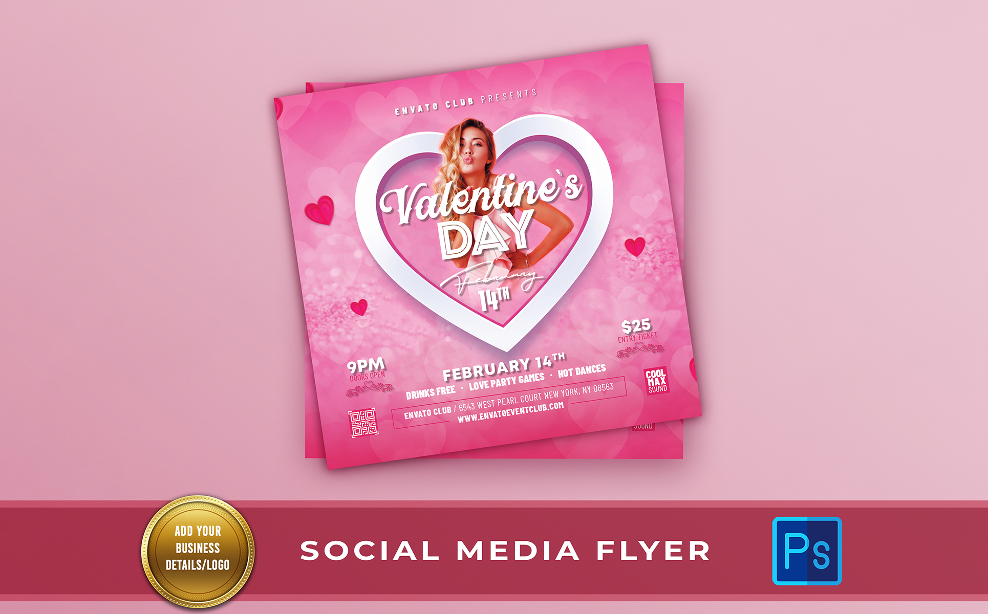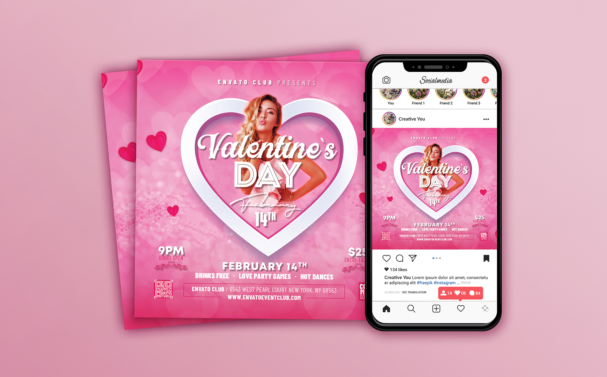 Valentine Party Flyer Template PSD. Fully customizable party flyer template for Photoshop. Easy to use and fully customizable. Buy this template now and start using it. Shorten your working time.