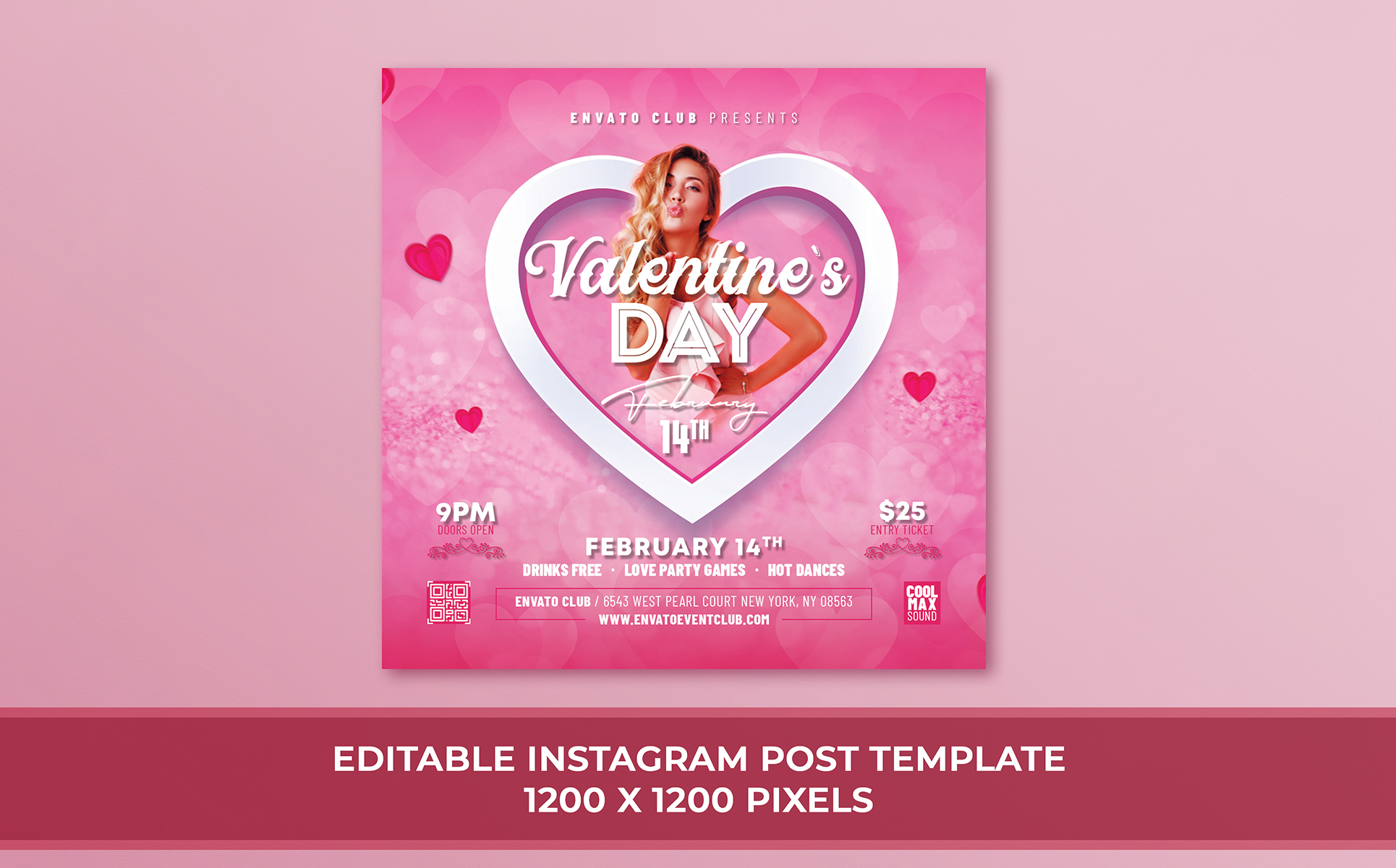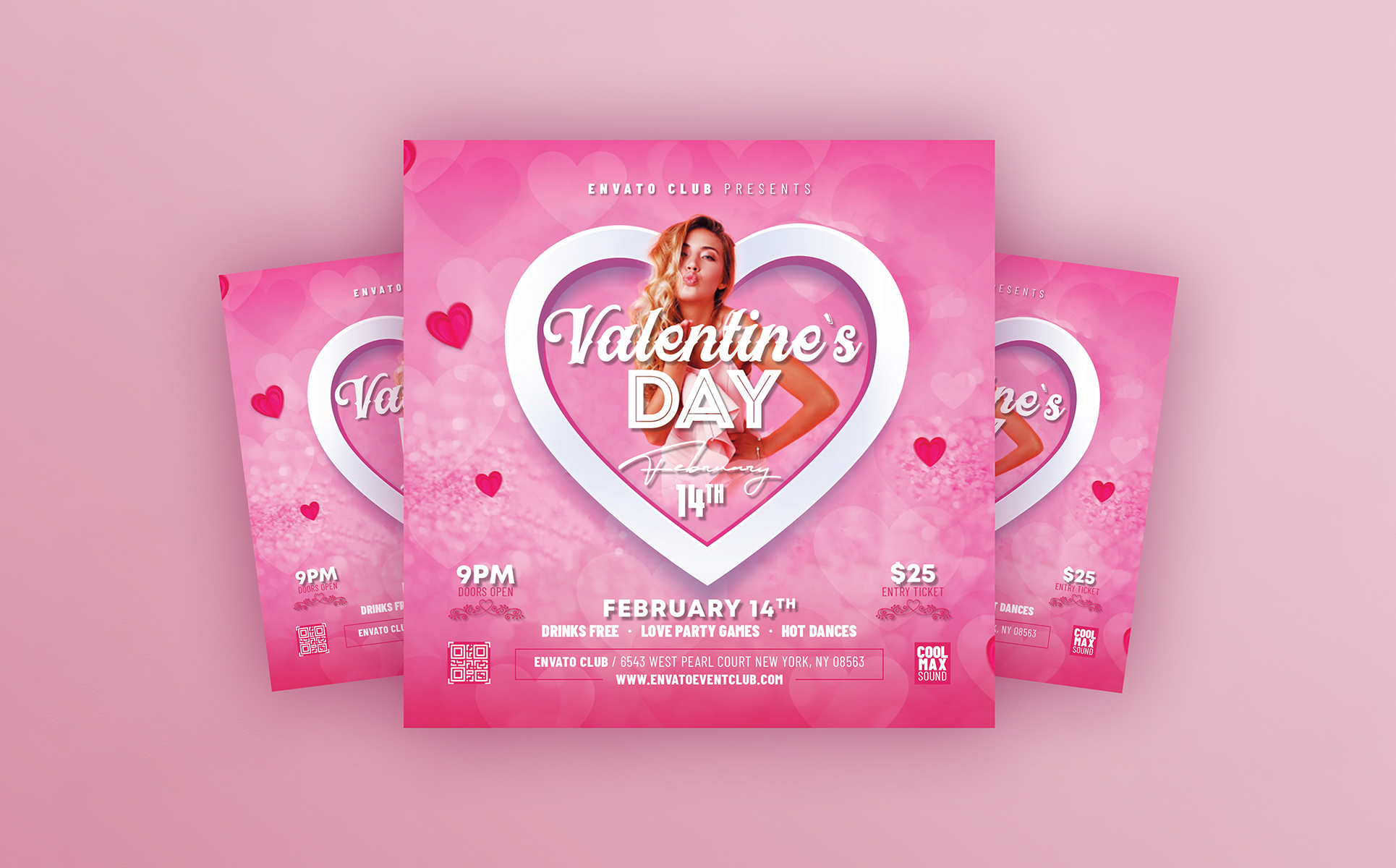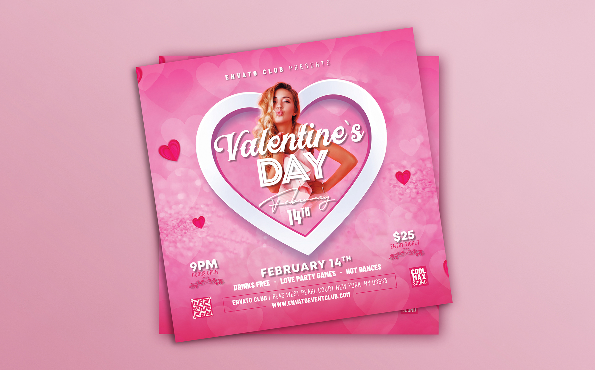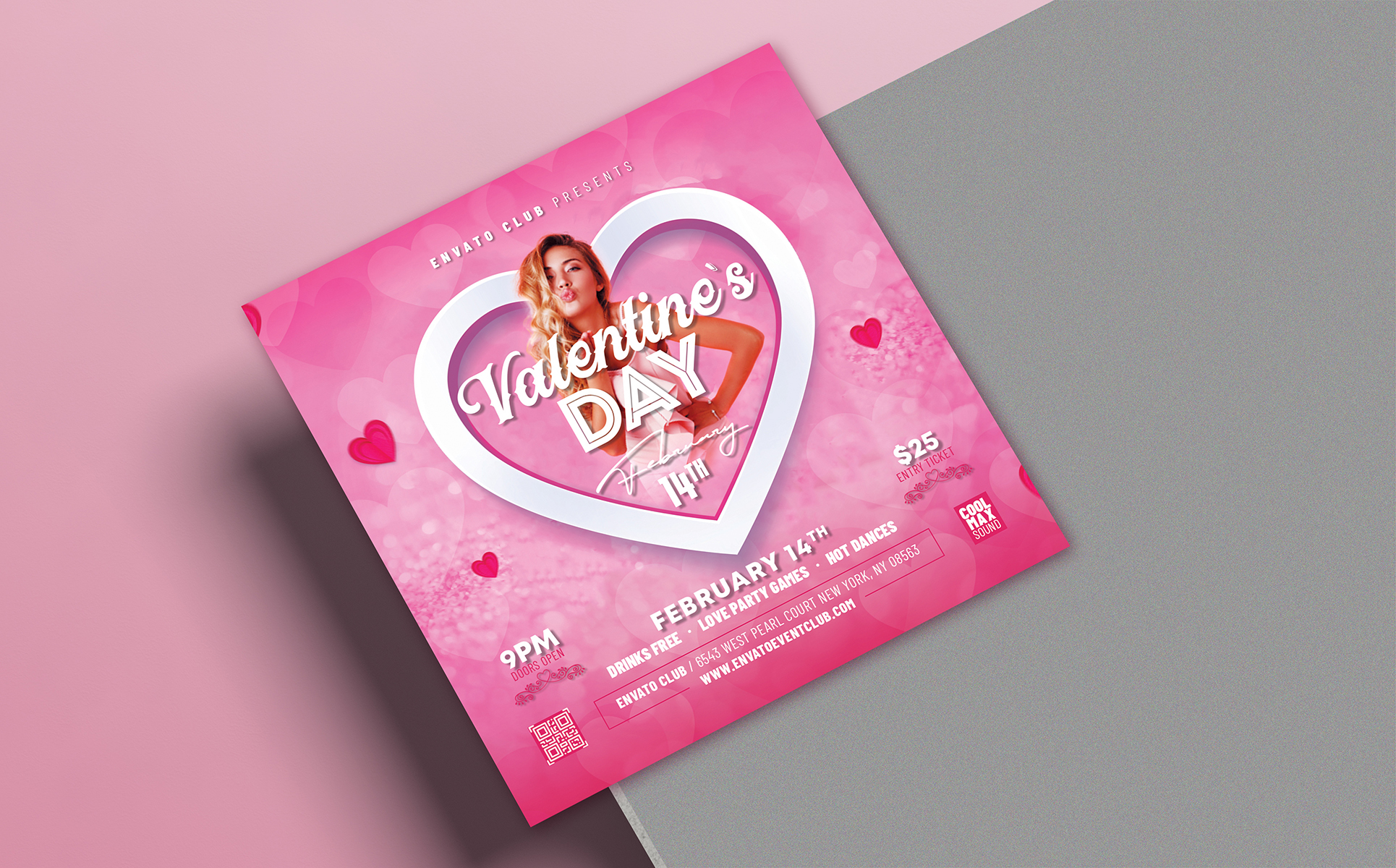 Valentine Party Flyer Template is very modern PSD flyer that will be the perfect invitation for your Valentines event or Club party! All elements are in individual layers and the text is fully editable!