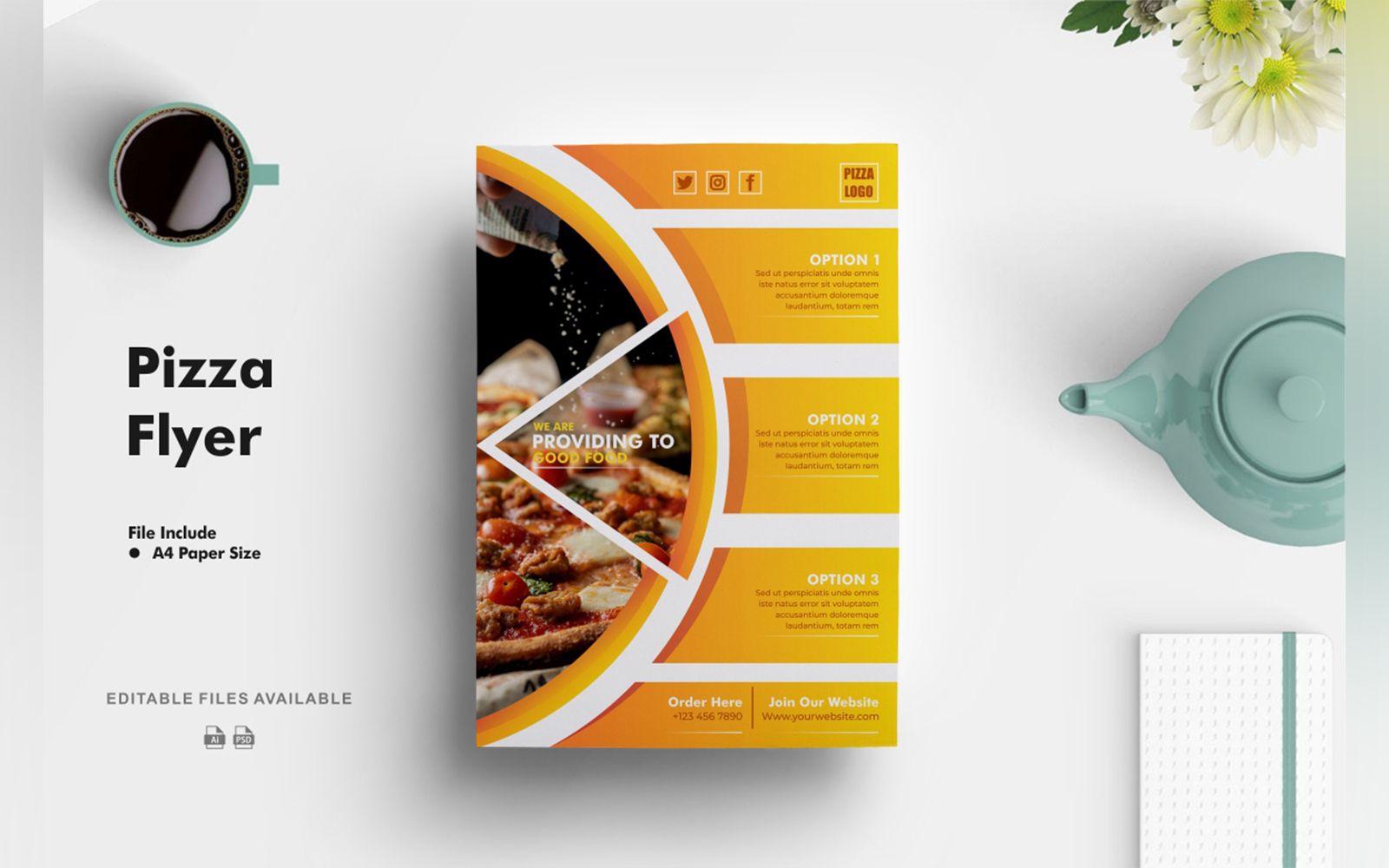 Flyer template is designed for multipurpose businesses. Very easy to use and customize. Perfect for restaurant, pizza, food, promotion, etc.