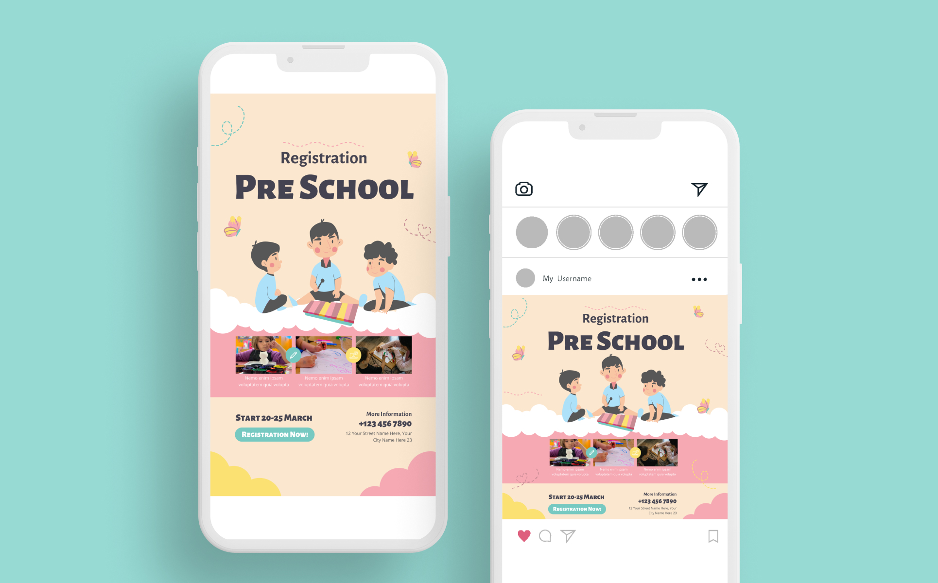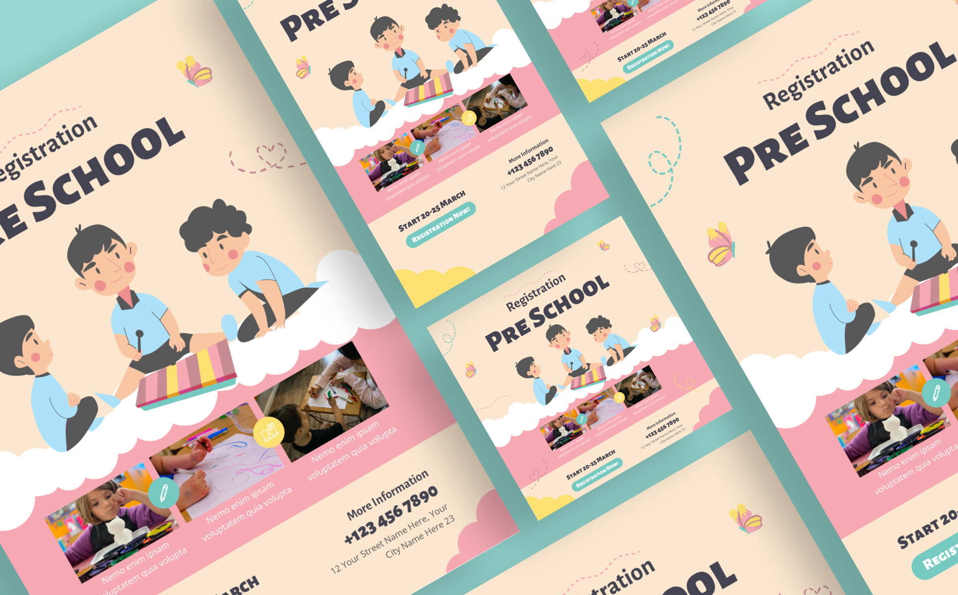 Preschool Registration - Single-Sided Flyer Template was designed to promote an preschool admission / kindergarten / school registration or other advertising purposes.