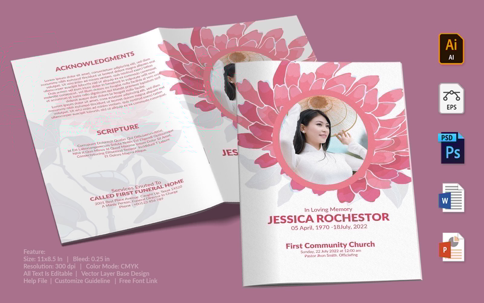 Printable Funeral Program Template | Memorial Program Template | FPT001