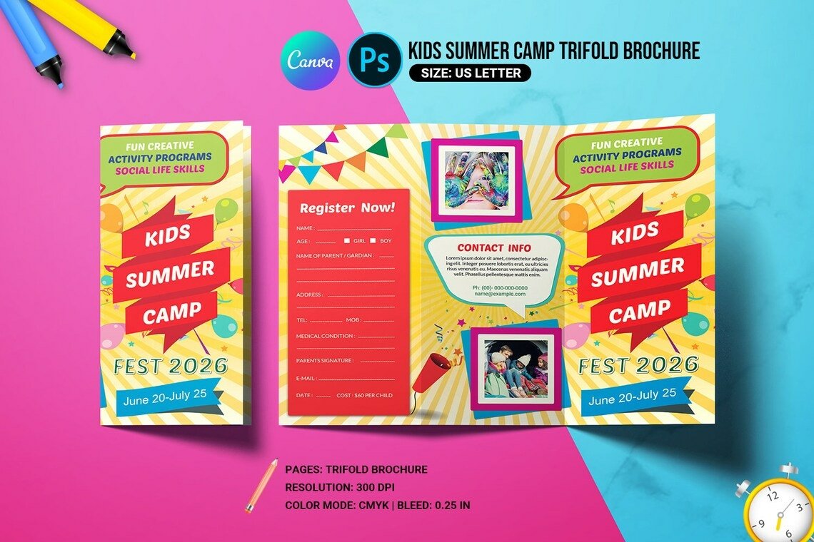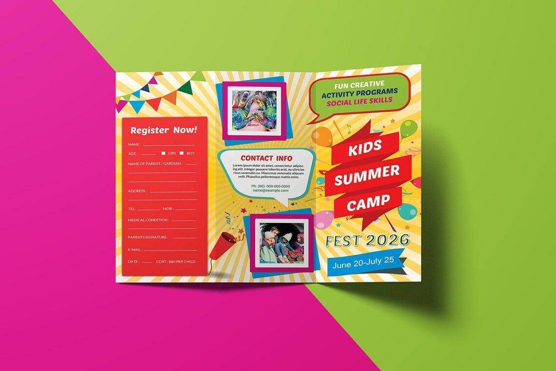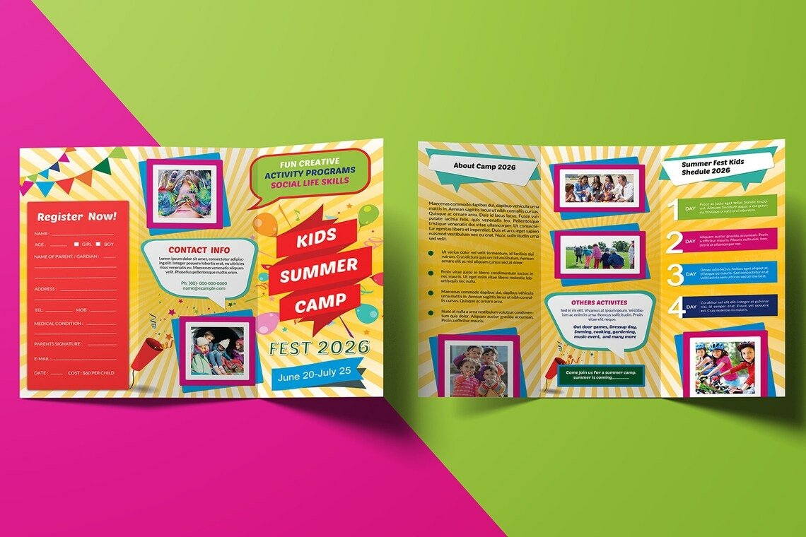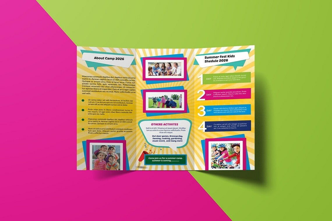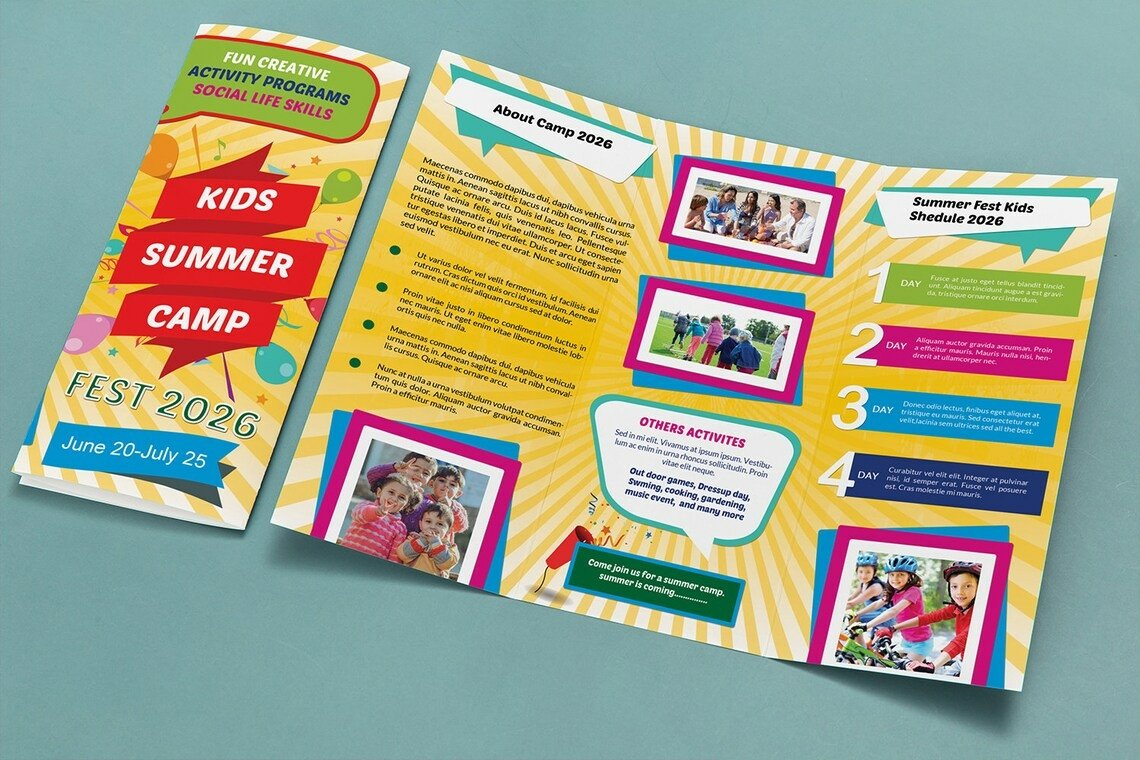 Printable Kids Summer Camp Trifold Brochure Corporate Identity