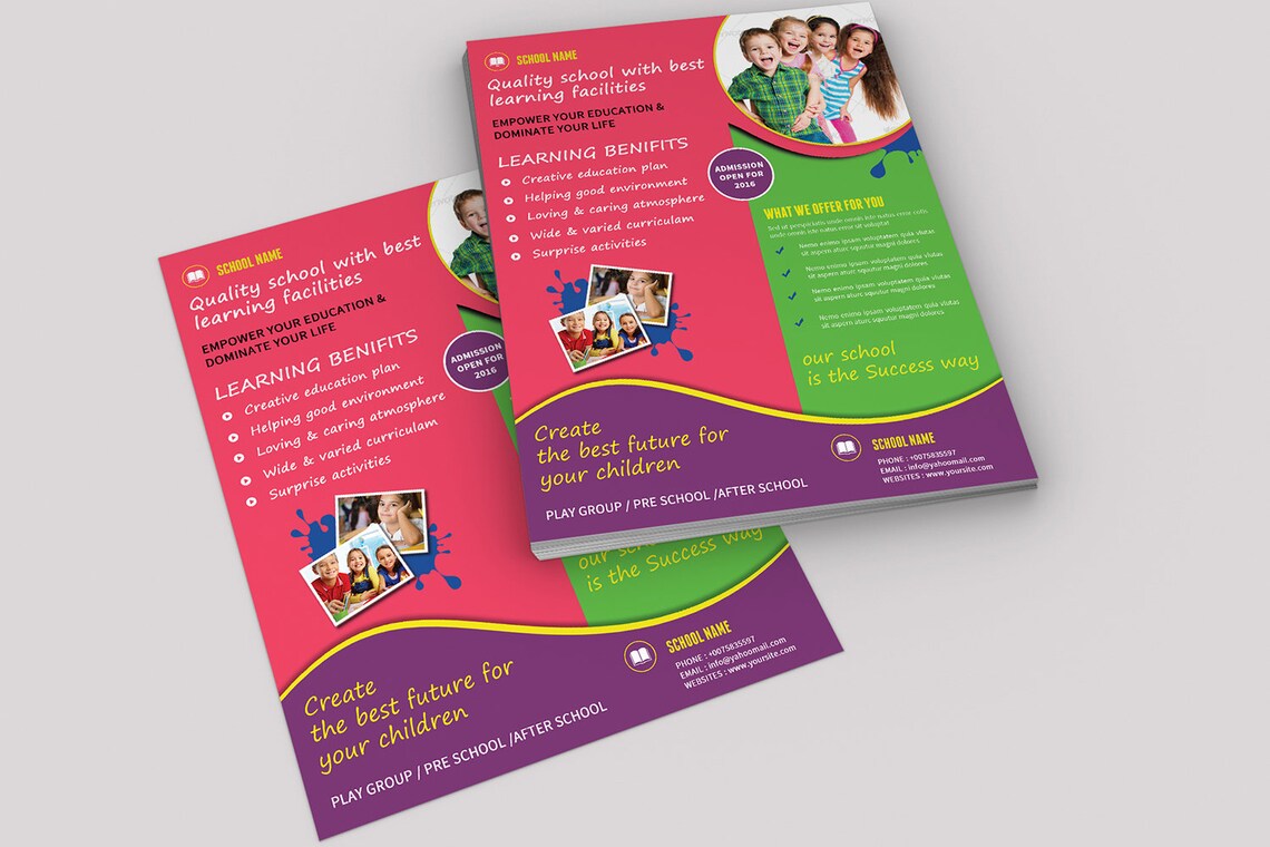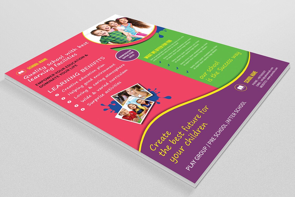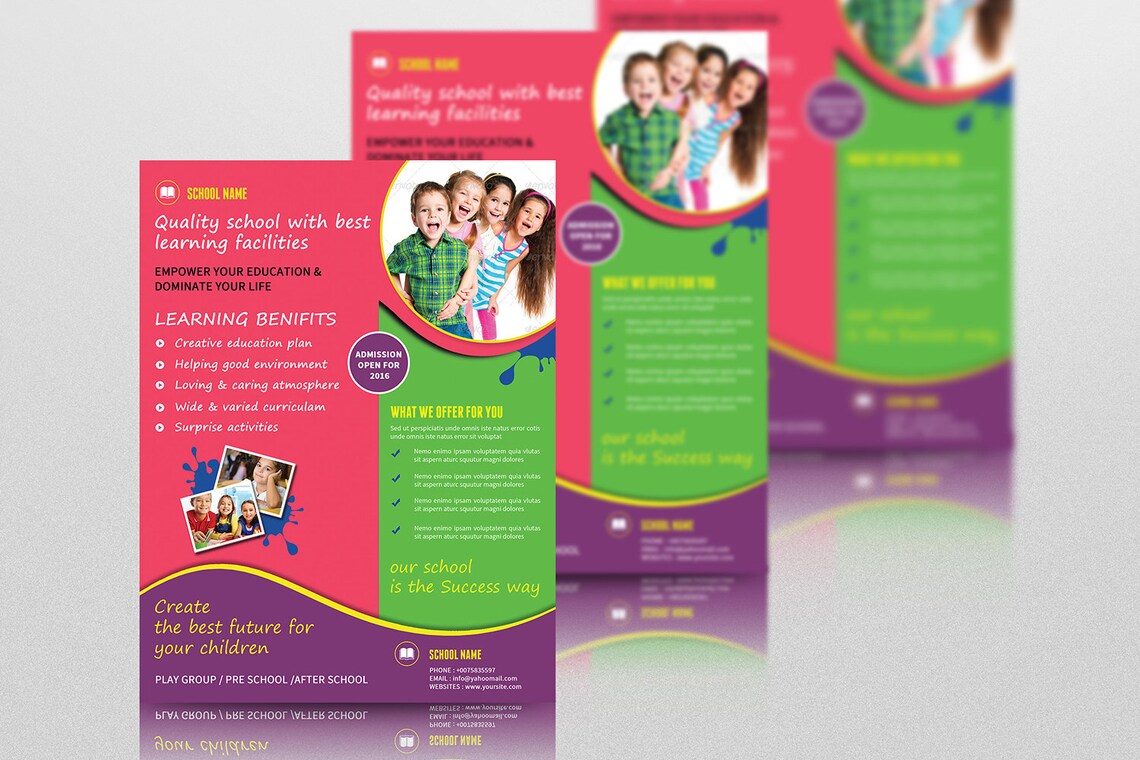 School flyer template is suitable school and any educational organization. Smart object used to replace images and all object is in separate layer for easy edit ability.