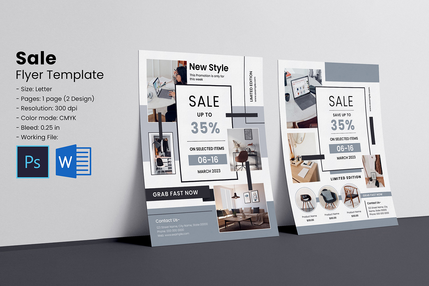Product Sale / Promotional Flyer , word & Psd Corporate Identity