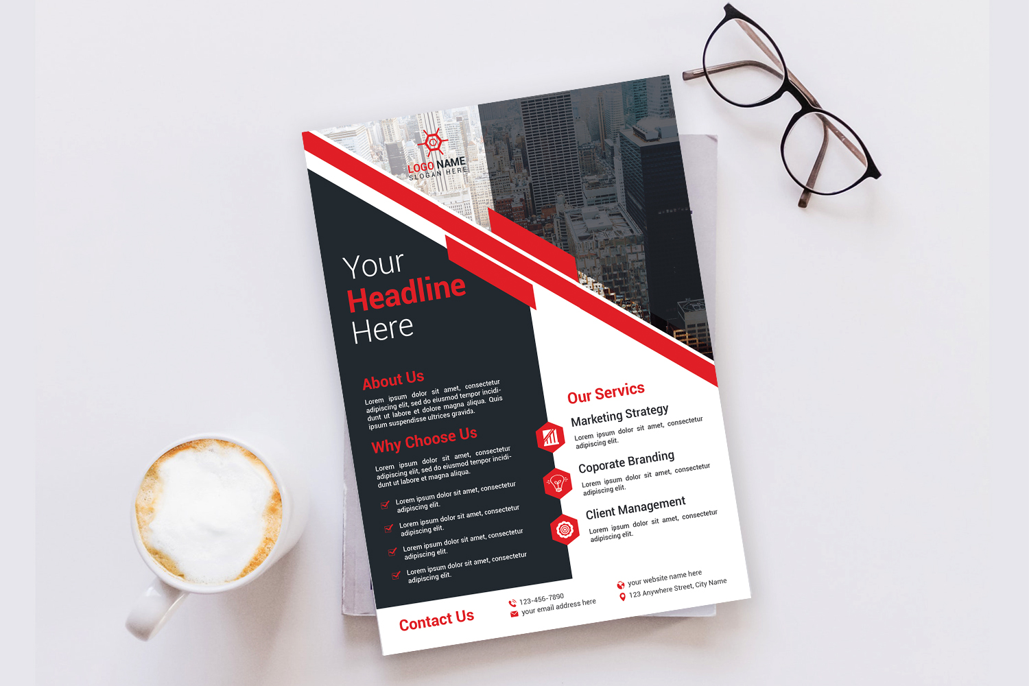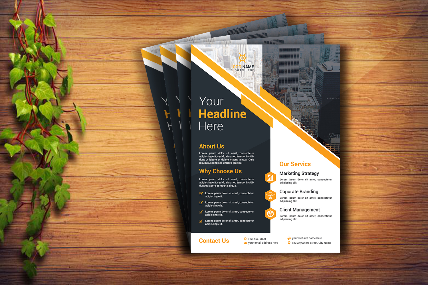 This is a Professional Flyer Design Template. This Flyer download contains 300 dpi print-ready CMYK PSD, AI & EPS files. All main elements are editable and customizable.
