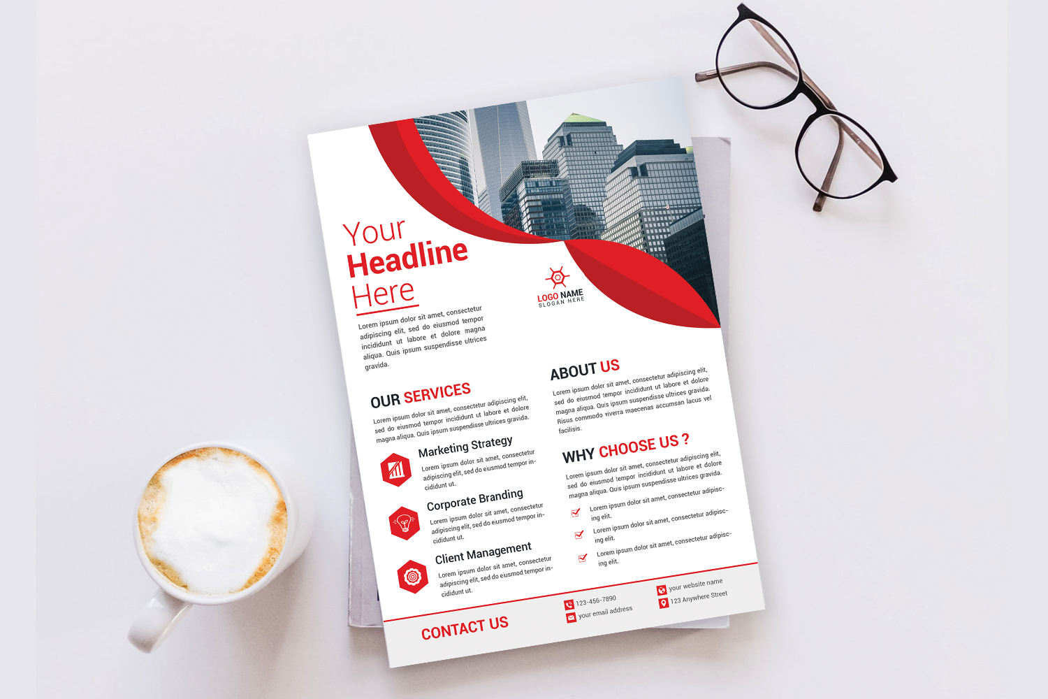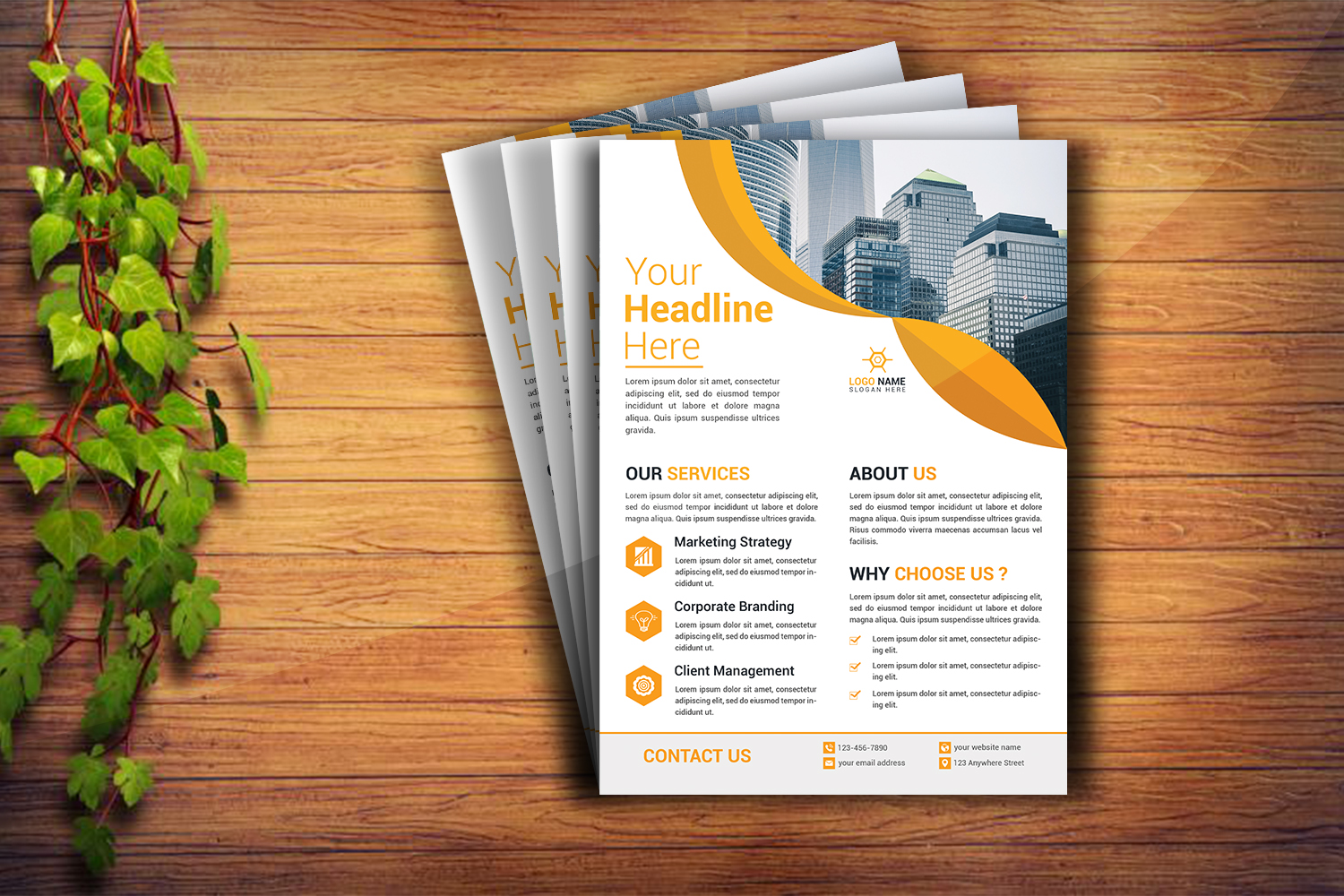 This is a Professional Flyer Design Template. This Flyer download contains 300 dpi print-ready CMYK PSD, AI & EPS files. All main elements are editable and customizable.