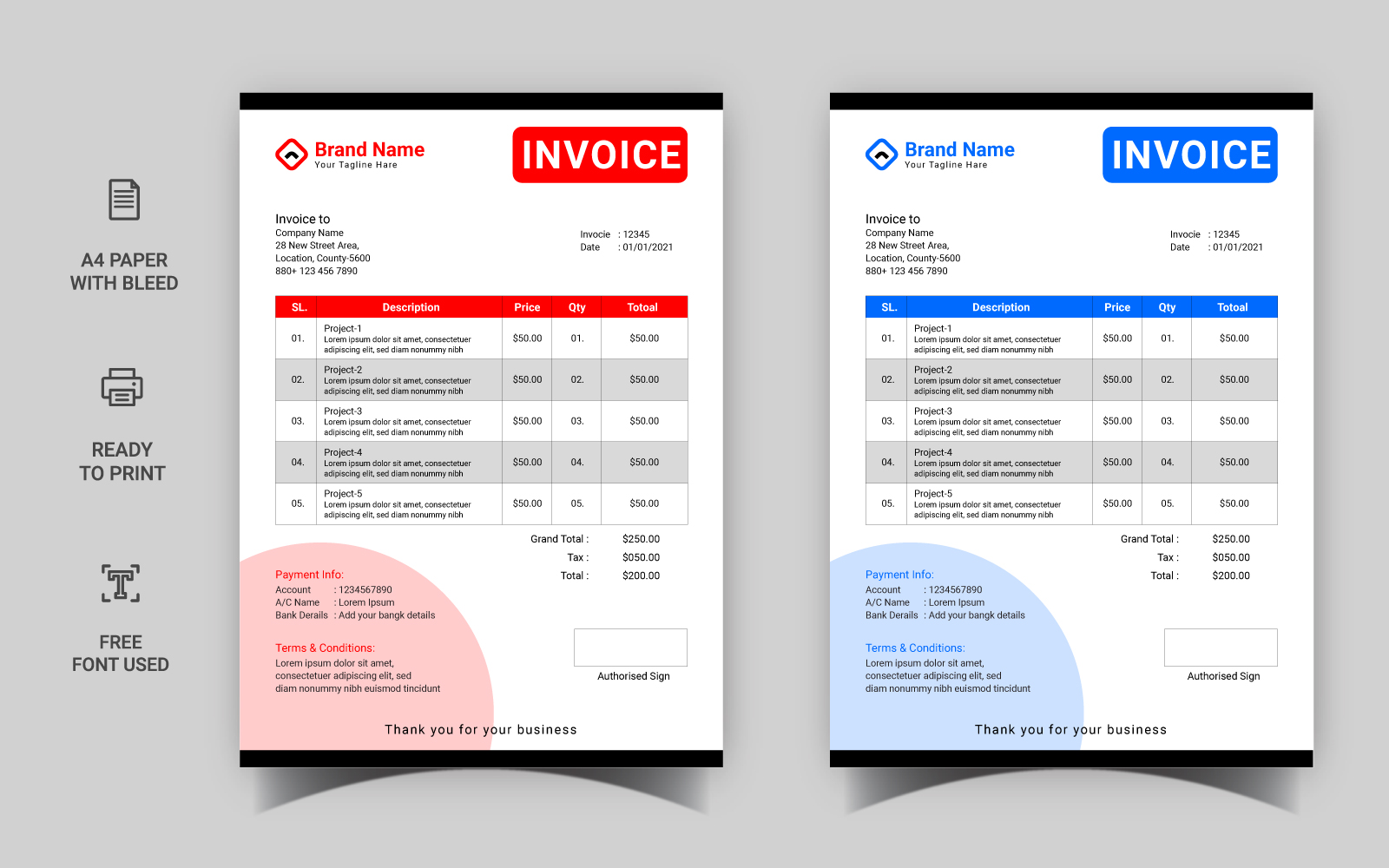 This is a clean eye-catchy Invoice Template suitable for all businesses.