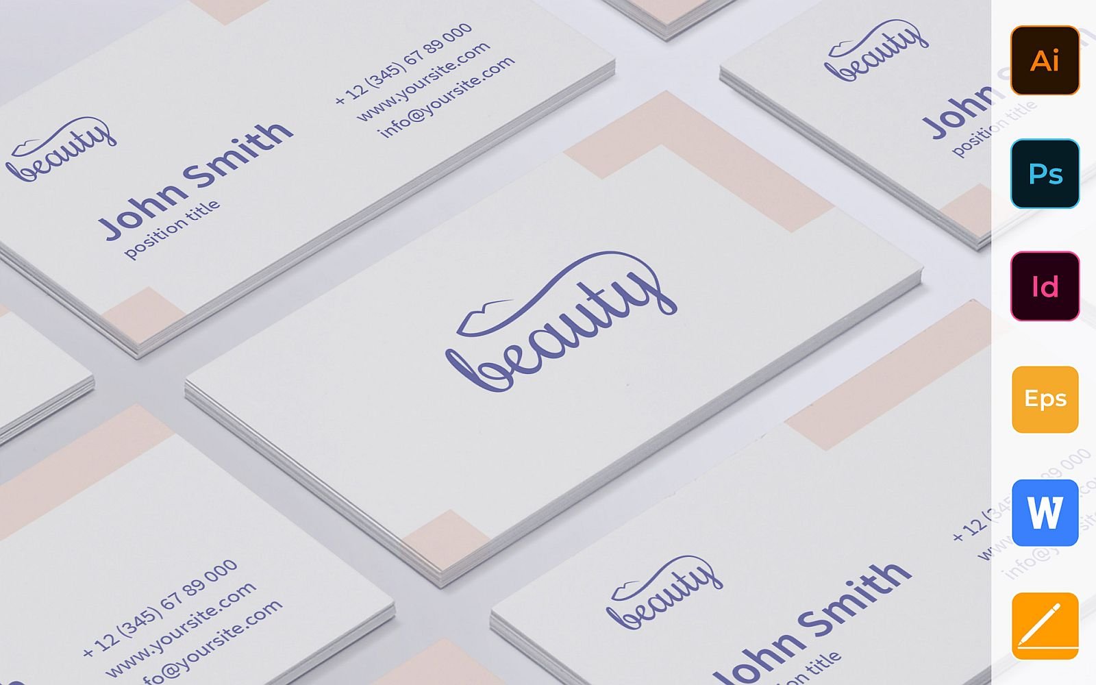 The pack includes 2 variants of high-quality business card templates, suitable for any kind of business. Each card is fully customizable, with editable texts and a logo. You can easily transfer the template into a unique business card of EU or US format.