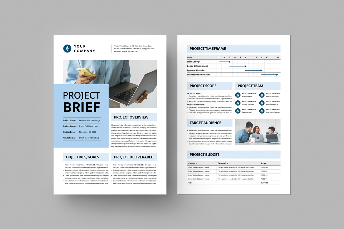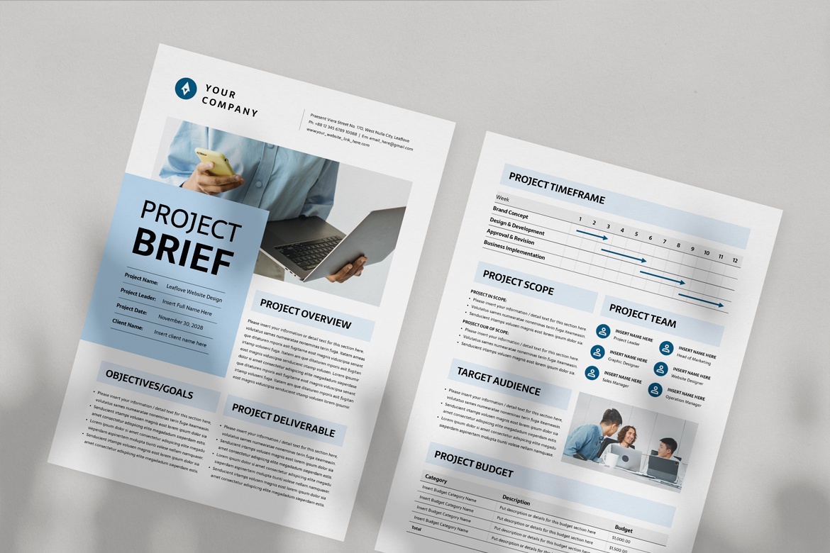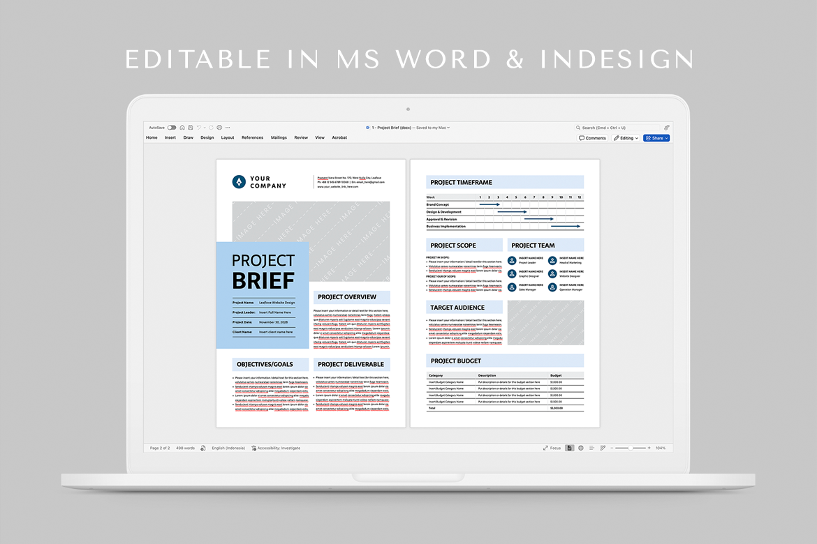 Project Brief Template | Microsoft Word & Adobe Indesign Corporate Identity