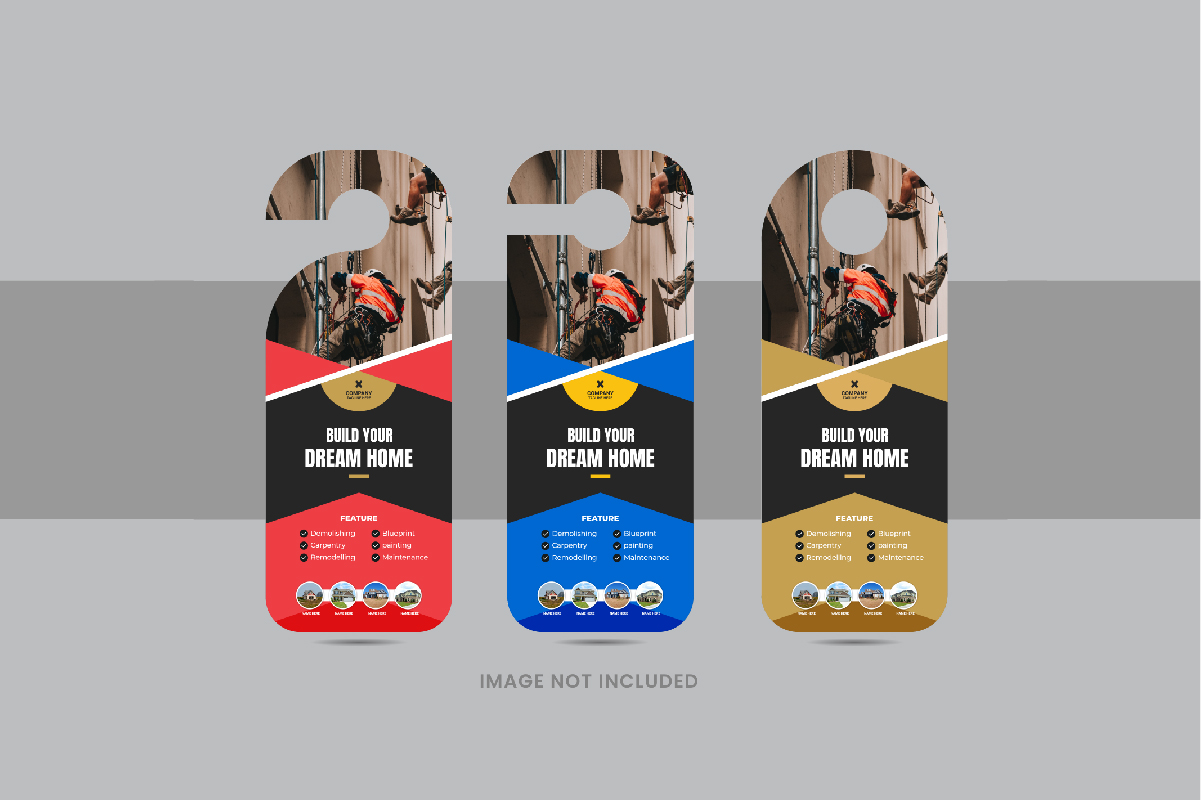 #Real estate construction or home renovation door hanger or handyman home repair door hanger #Main keyword : Real estate construction or home renovation door hanger or handyman home repair door hanger, building door hanger, hotel hanger design, door handle design, do not disturb, creative room hanger, modern corporate layout,classic branding, creative door hanger, marketing layout, real estate door hanger