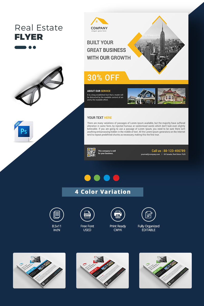 A flyer templates designed exclusively for property-related industry. If you are real-estate agent, realtor, or company that want eye-catching, professional, clean designed flyers, these premium templates could be your great alternatives. These templates are fully editable, photos can be quickly added or replaced on the placeholder images with ease as the layers are in smart objects!