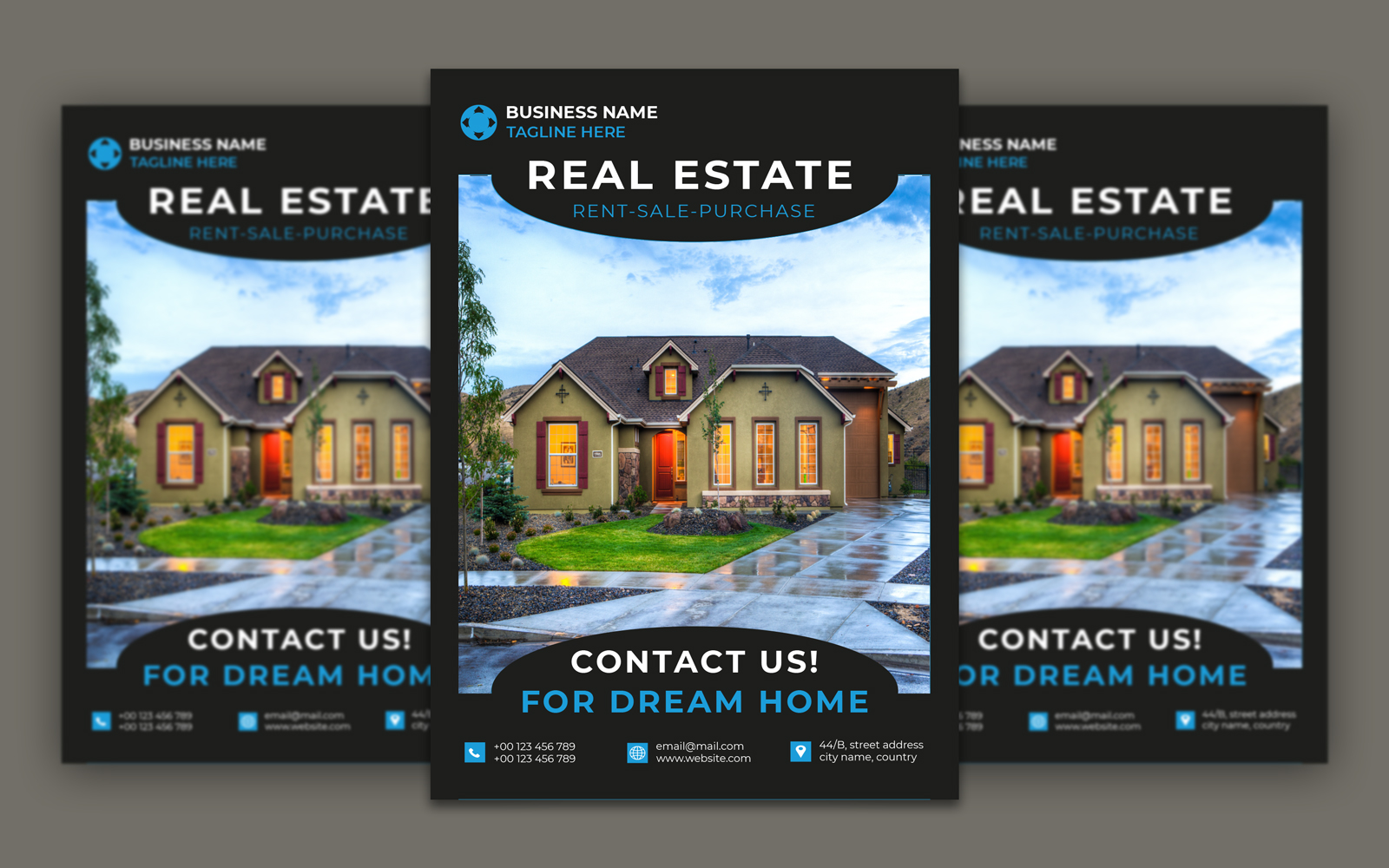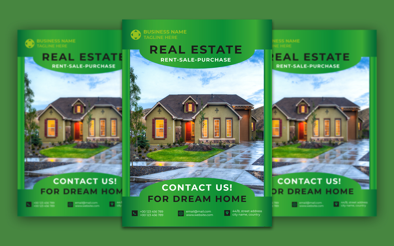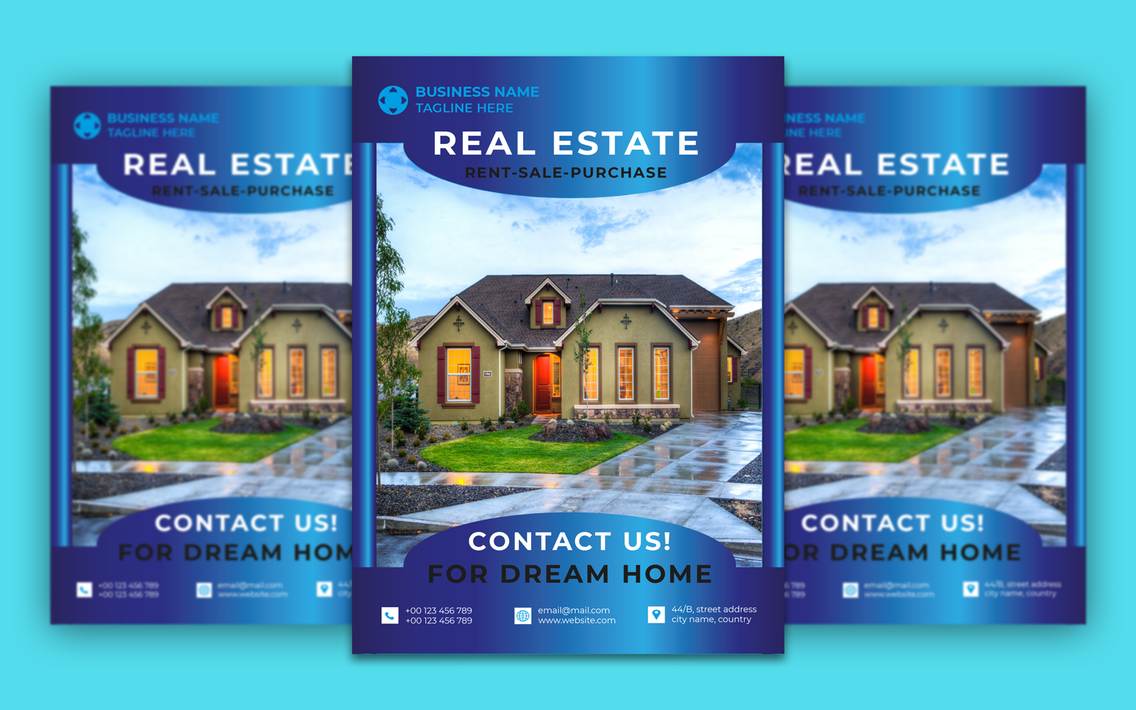 It's a Real Estate with four colour variations. The flyer is very useful for real estate, housing schemes, and construction businesses. It's vector-based built-in Illustrator software that is fully editable and scalable without losing resolution.