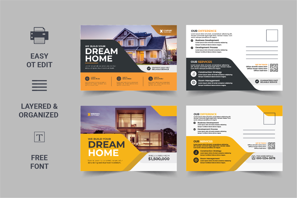Modern Real Estate Postcard Template, Real Estate,Property Sell or home sale eddm Postcard. All type of Corporate business company, agricultural Company, Home Sale, Land Sale or other property selling company could use Modern Real Estate Postcard Template, Real Estate,Property Sell or home sale eddm Postcard