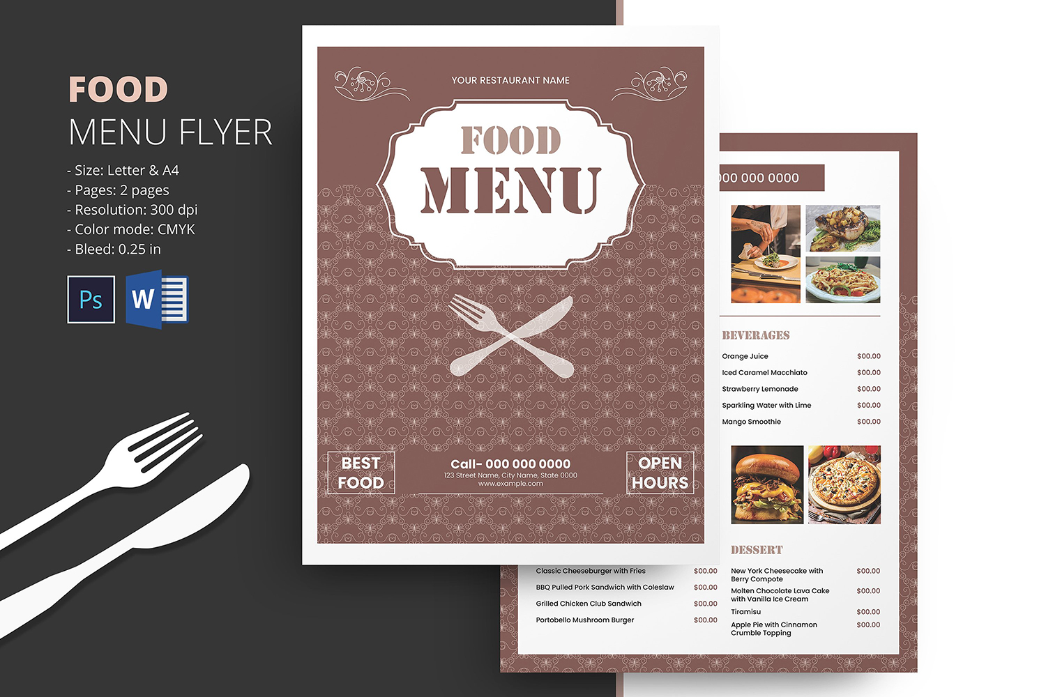 Restaurant Flyer / Food Menu Flyer. Word & Psd Corporate Identity