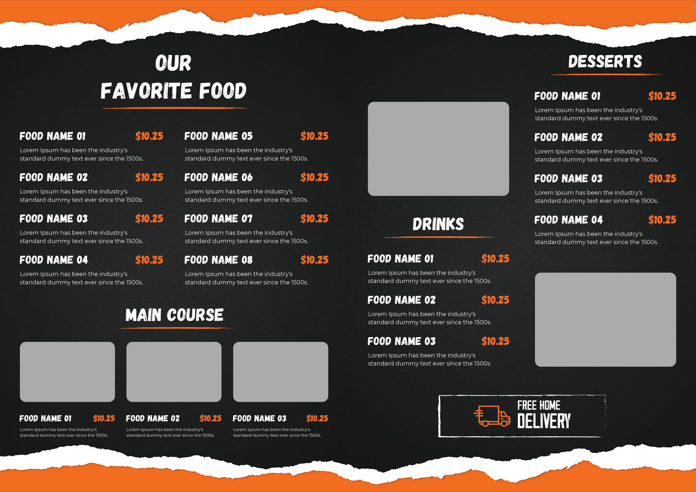 Restaurent Menu : Food Bifold Menu Flyer Design Template Banner, Poster, Flyer, Cover, Menu, Brochure Design Template Cooking, Cafe And Restaurant Menu, Food Ordering, Junk Food. Pizza, Burger, Healthy Meal, Green Color Restaurant Menu Template Banner, Poster, Flyer, Cover, Menu, Brochure. Pizza Shop Flyer, Food Delivery Flyer Pamphlet Brochure Design Vector Template, Taco Flyer Template. Burgers Restaurant Vertical Flyer Template Vector, Set Of Restaurant Menu, Brochure, Flyer Design Templates. A highly versatile multipurpose flyer suitable for all business industry. Especially helpful to promote your restaurant and food business. This template download contains a 300 dpi print-ready EPS, AI, PDF files. All main elements are editable and customizable.