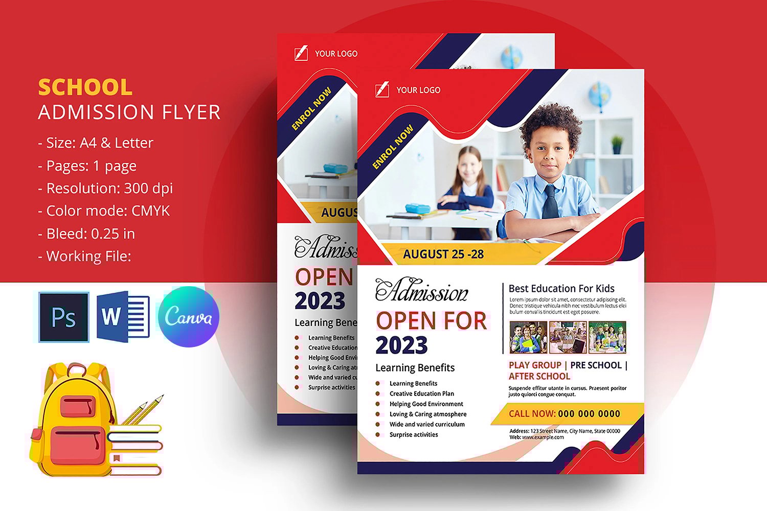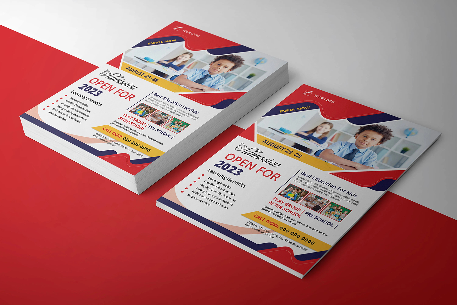 The school admission flyer template is a promotional material designed to inform prospective students and their families about the admission process and the unique features of your school.