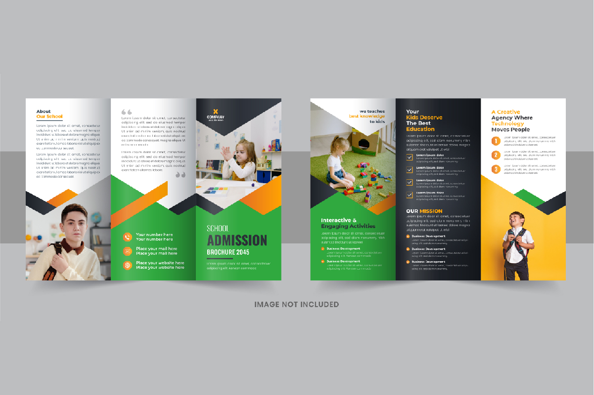 School Admission Trifold Brochure, Kids school admission trifold brochure. All type of Corporate business company, agricultural Company, Home Sale, Land Sale or other property selling company could use this School Admission Trifold Brochure, Kids school admission trifold brochure