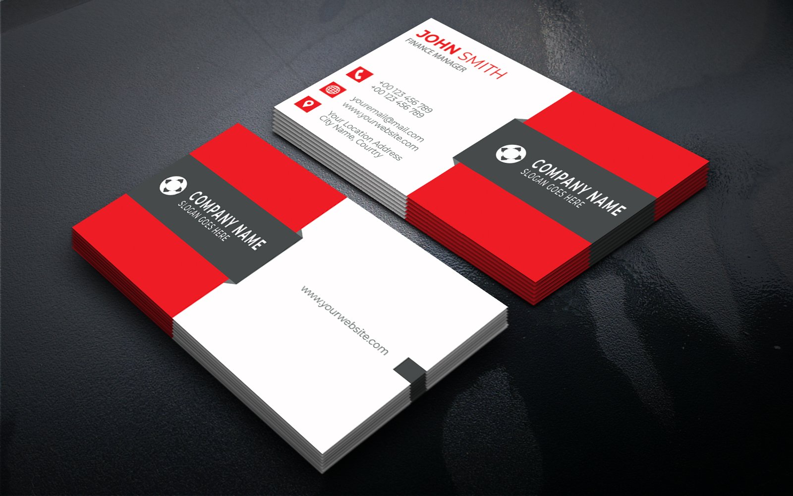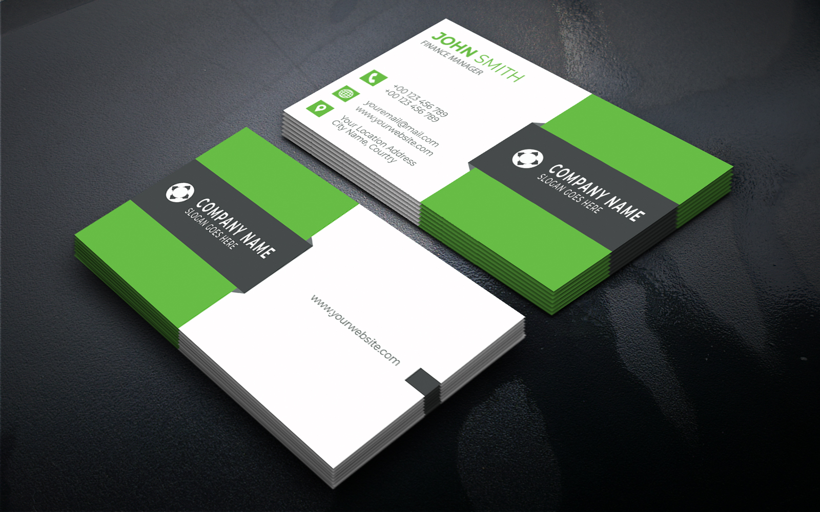 It's a simple business card template with 4 colour variations.
