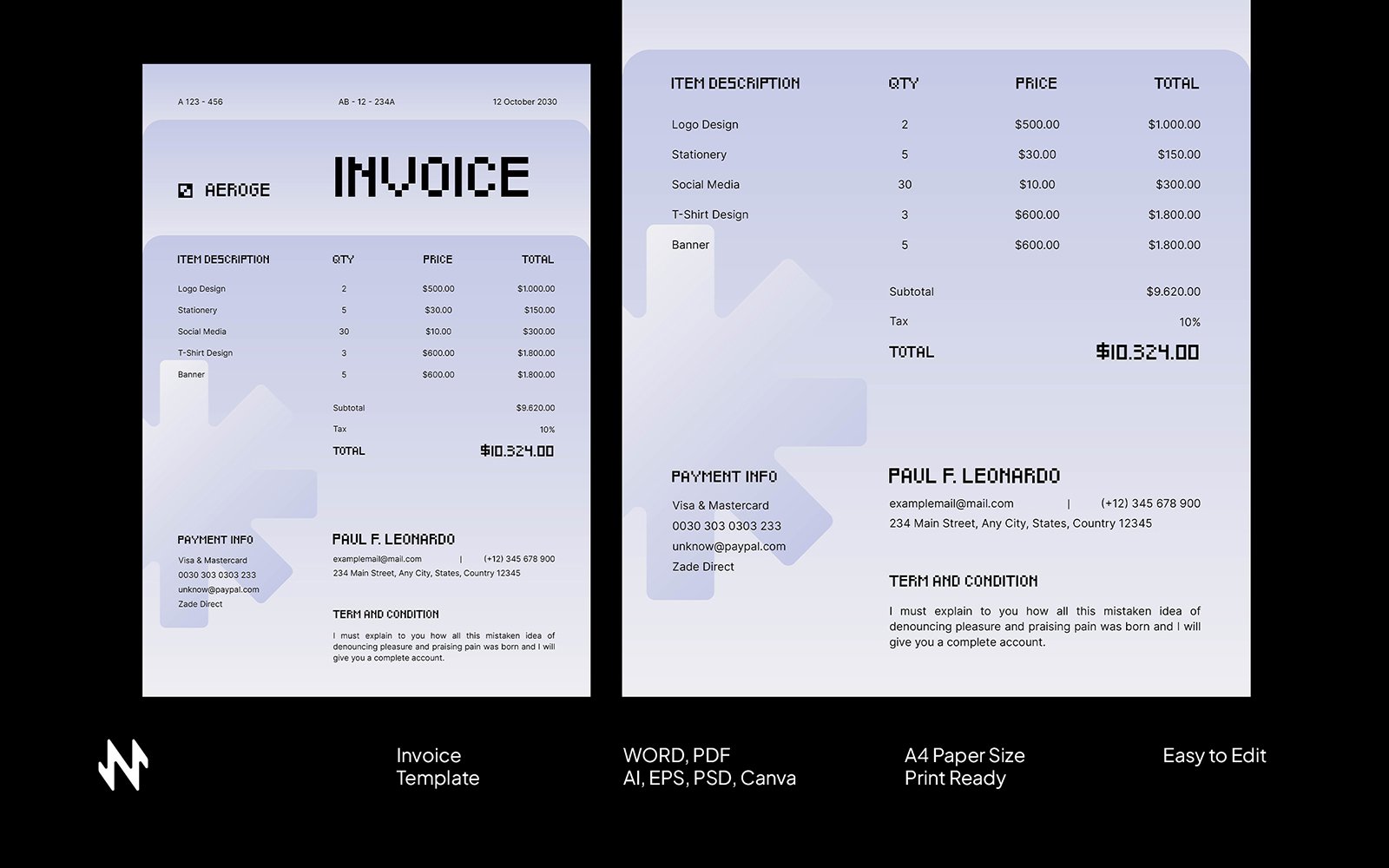 Invoice is an important document that should be owned by a business owner issued to the buyer. It’s a proof for sale transaction, indicating the products, quantity, agreed prices, payment method, etc. Every business needs this invoice template to fulfill its obligations on tax. As a professional in your business, of course you will need it to complete your company document. This invoice ready in many formats and easy to edit
