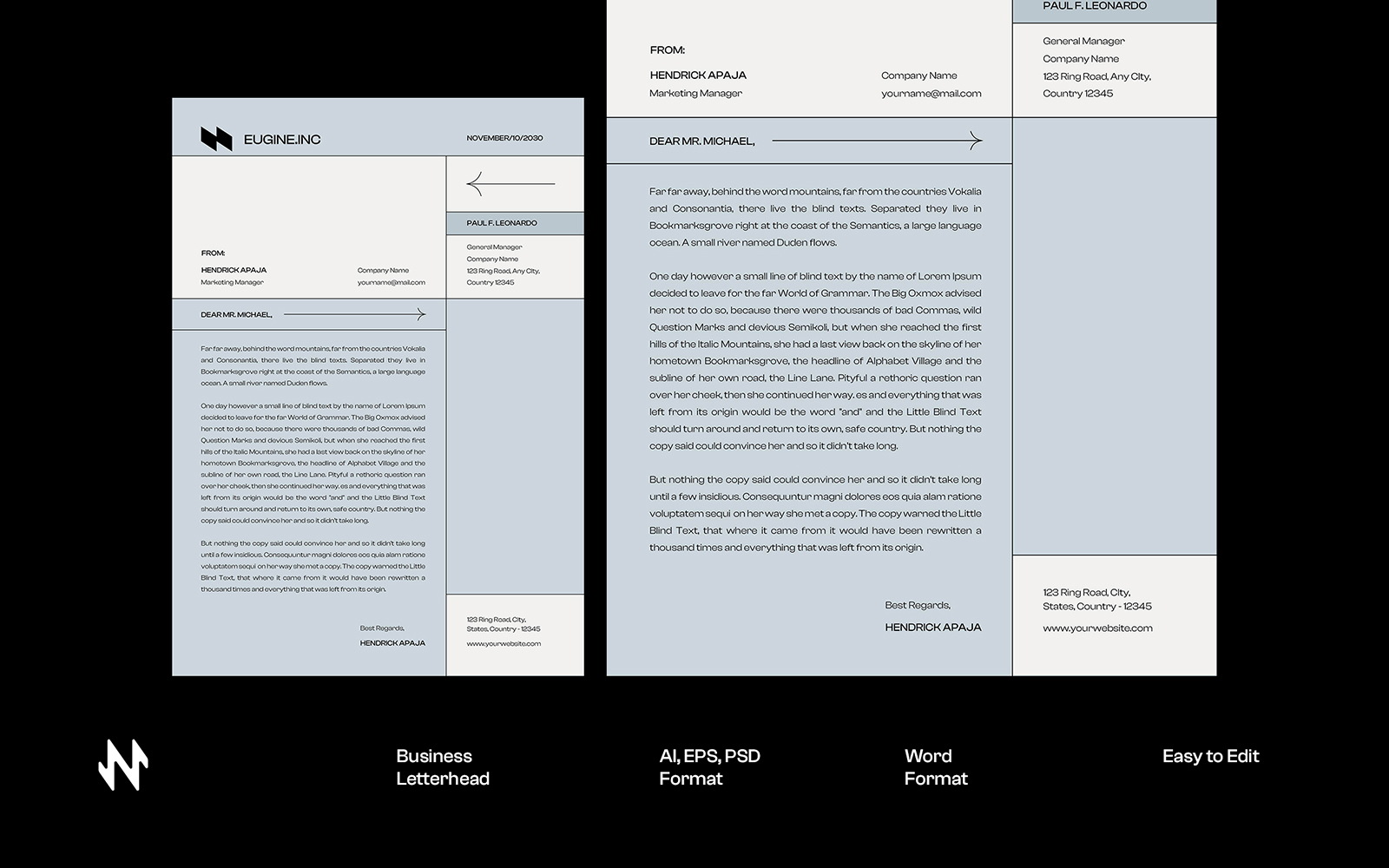 Letterhead design template with clean and professional design including your company contact, address, etc. Suit for any type of companies, for your stationery use.