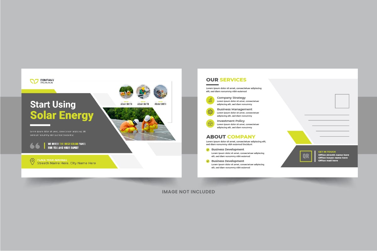 Solar panel energy services postcard template, green energy eddm postcard design layout Corporate Identity