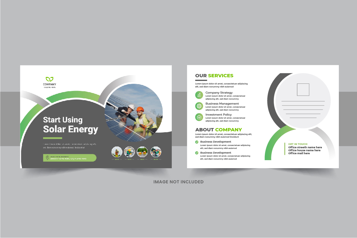 Solar panel energy services postcard template, green energy eddm postcard layout Corporate Identity