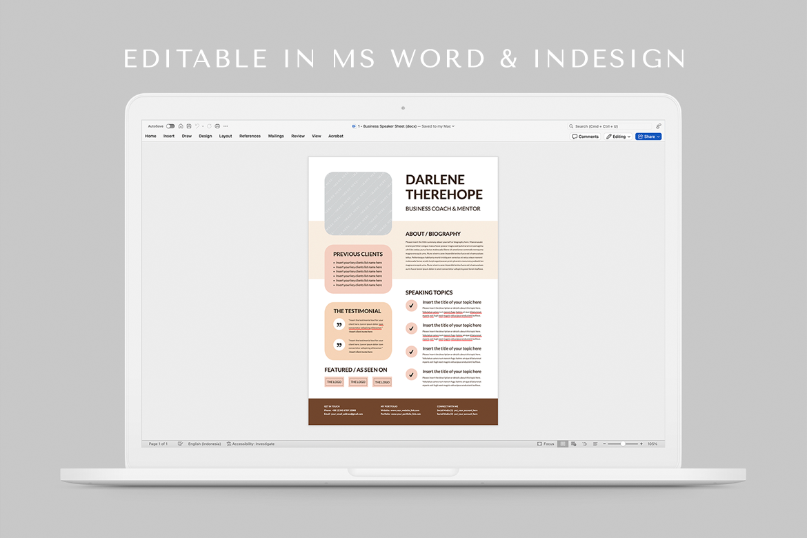 • This document is editable in microsoft word & adobe indesign only. It will not work in pages, google docs, adobe photoshop or other program. Please make sure you have the proper software before editing this item.
