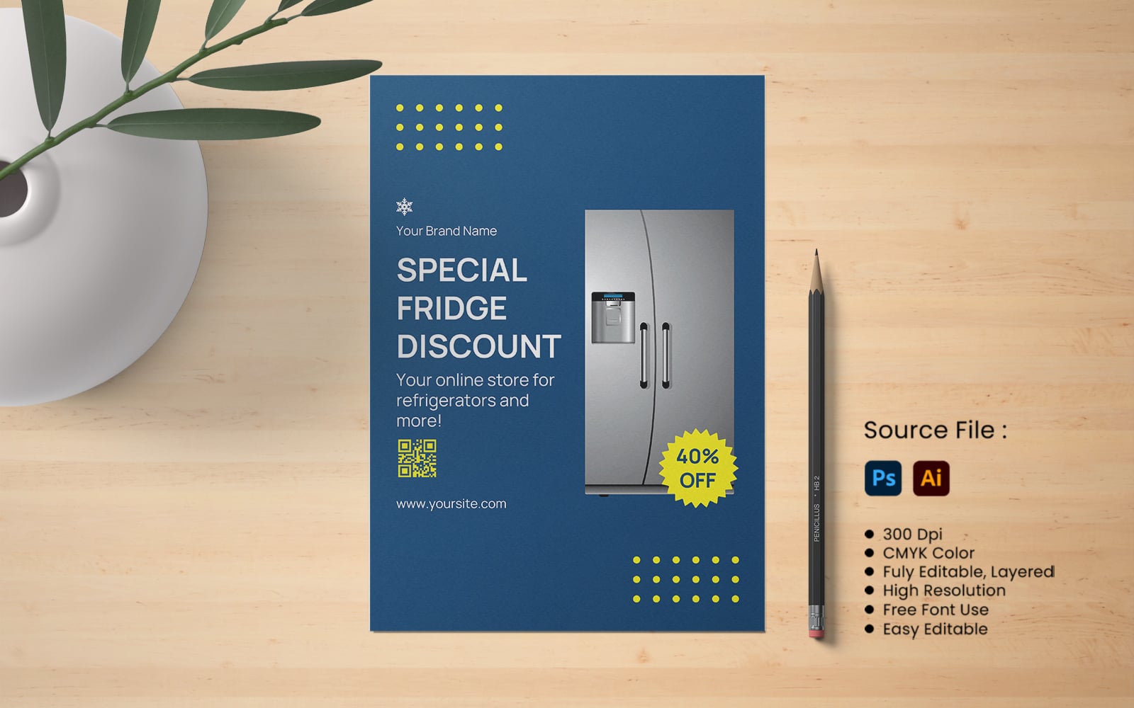 **Special Fridge Discount Flyer** is designed for multipurpose businesses. Very easy to use and customize.