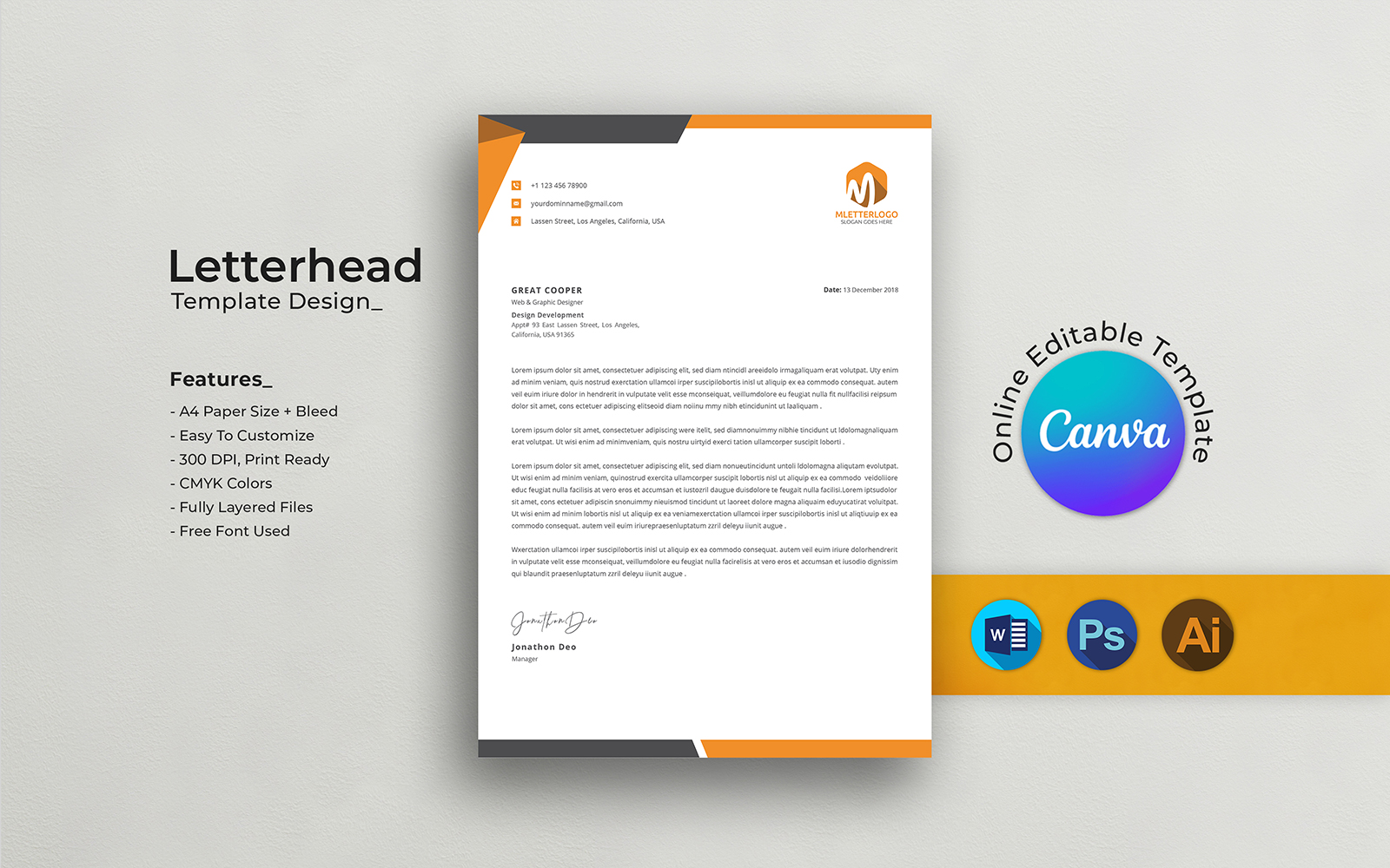 - A professionally designed letterhead template.