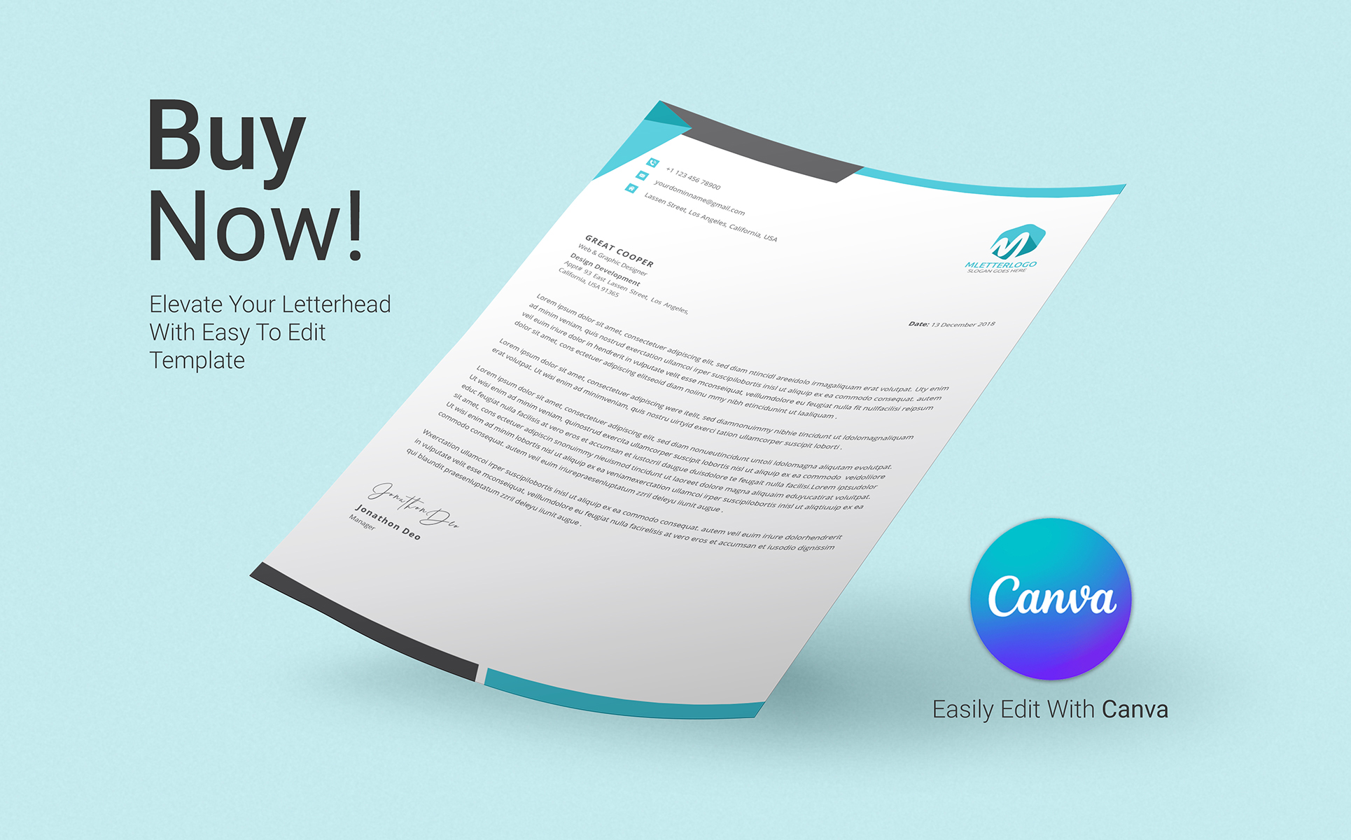 Present your business in a professional light with this modern and completely editable company letterhead template digital download! Fully customizable for everything from colors to text, you will receive this template in Canva, Illustrator, Photoshop and Microsoft Word, so you can easily edit yourself. I flawlessly create and design every aspect of my templates, such as layout, color, typography, photos and other related content, so that they are seamless, quick and easy to use.