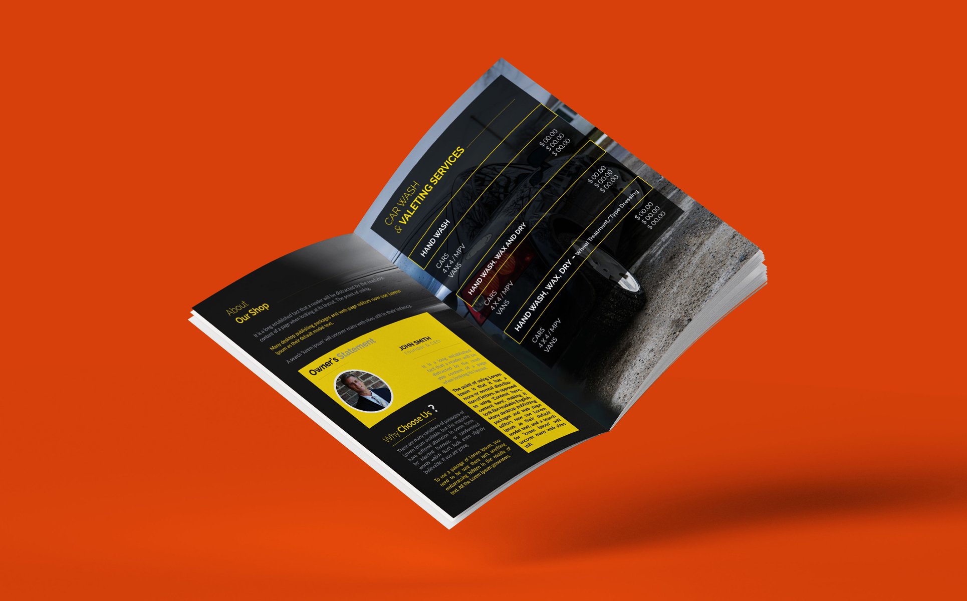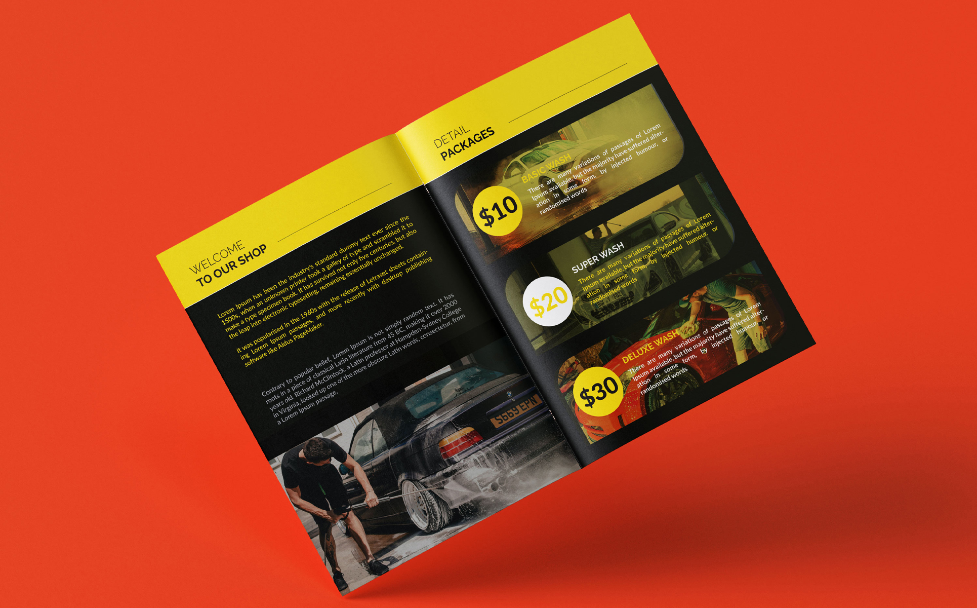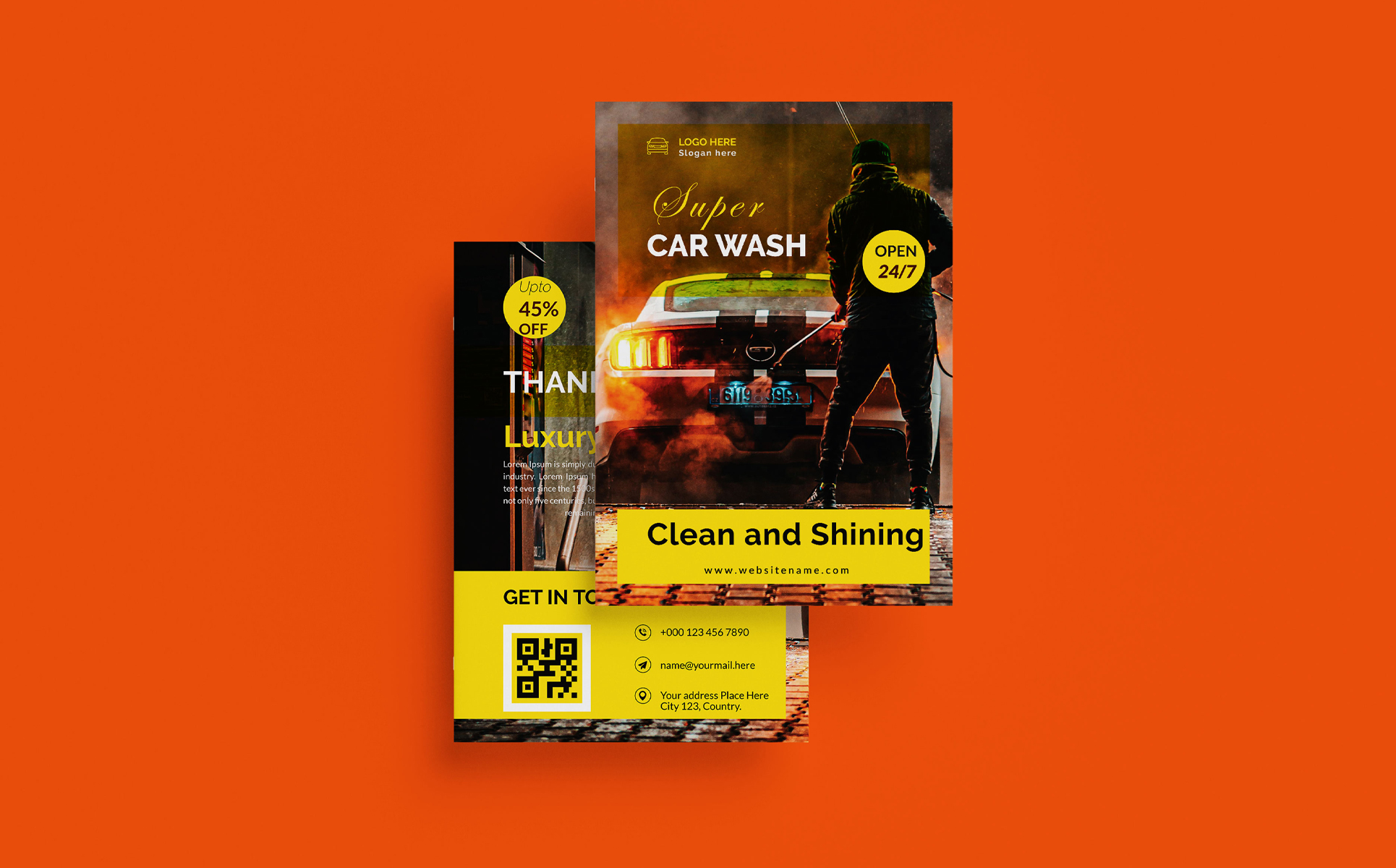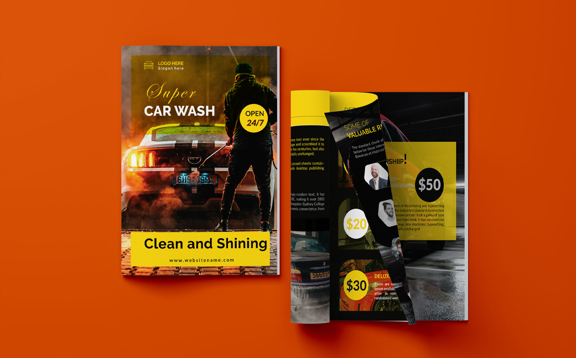 Make your brand shine as bright as the cars you clean with this stunning and market-ready brochure template!