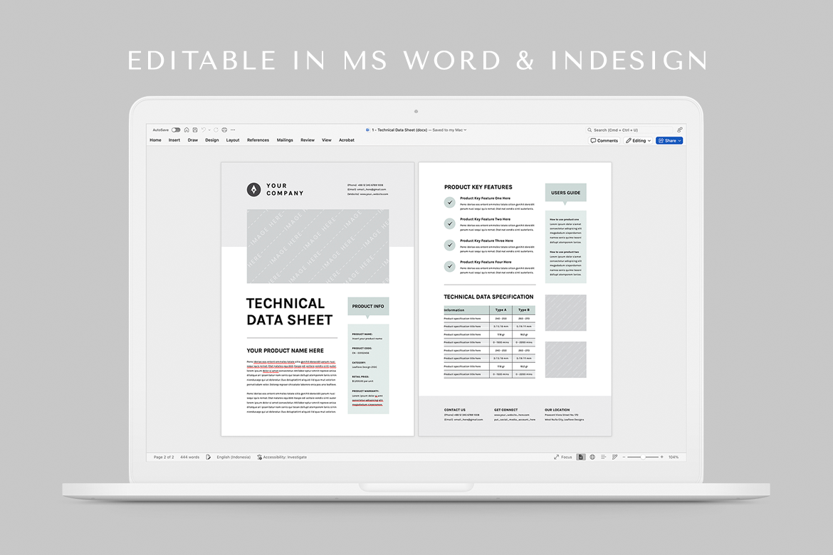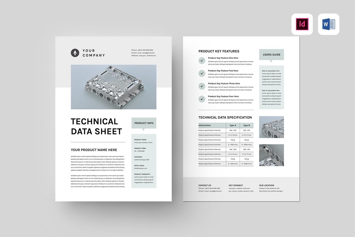 Technical Data Sheet | Microsoft Word & Adobe Indesign Corporate Identity
