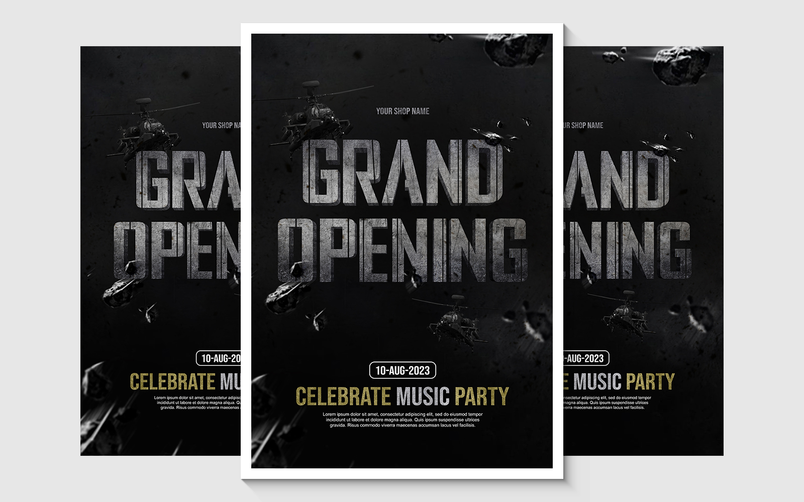 Grand Opening poster /flyer template is very well organized in folders and layers. You can modify everything very easy and quick. Changing the color style, pictures and the typo is no problem.The main folders that will require most customization are highlighted in different color