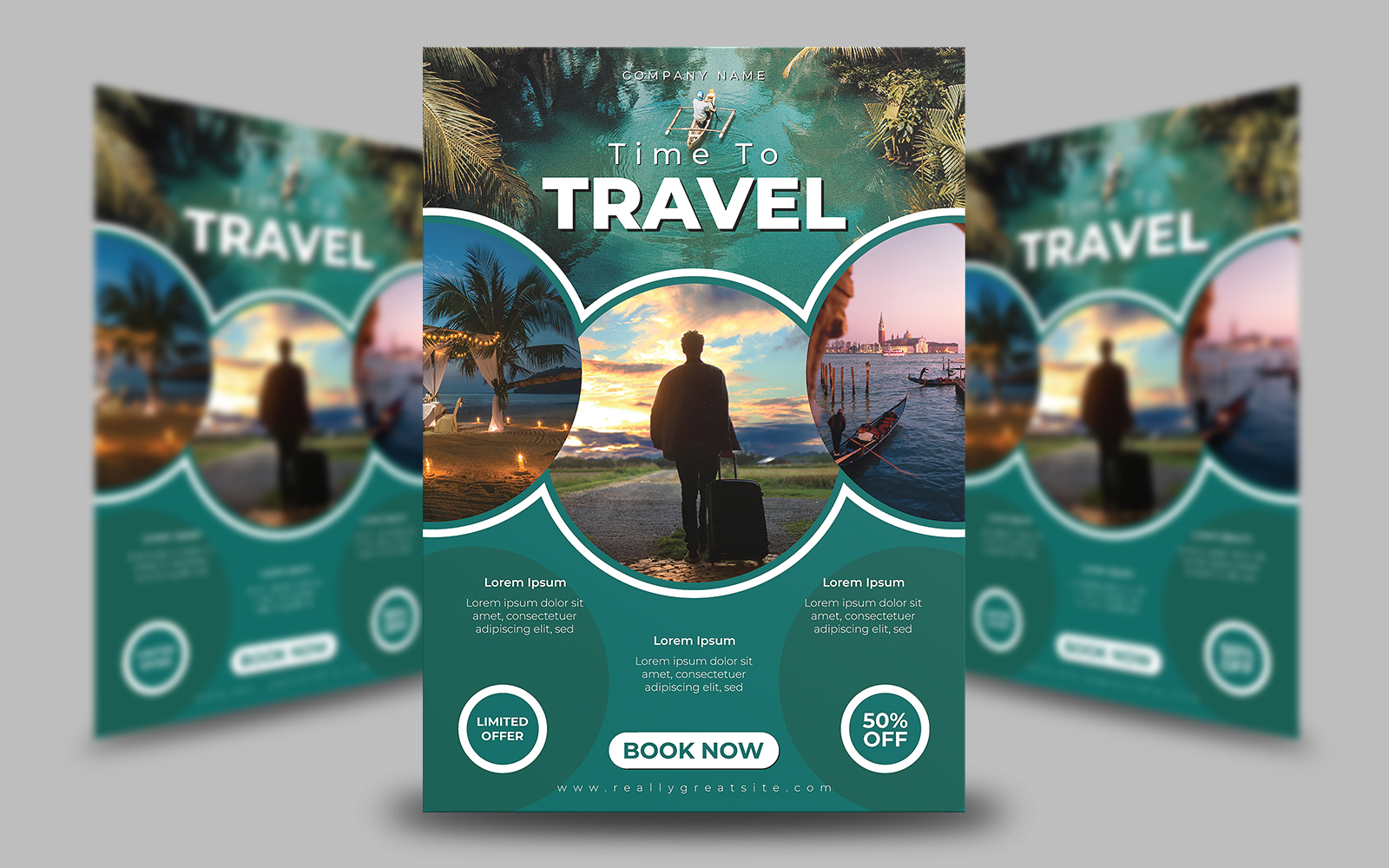 **Time to Travel Flyer Template** is designed for multipurpose businesses. Very easy to use and customize.