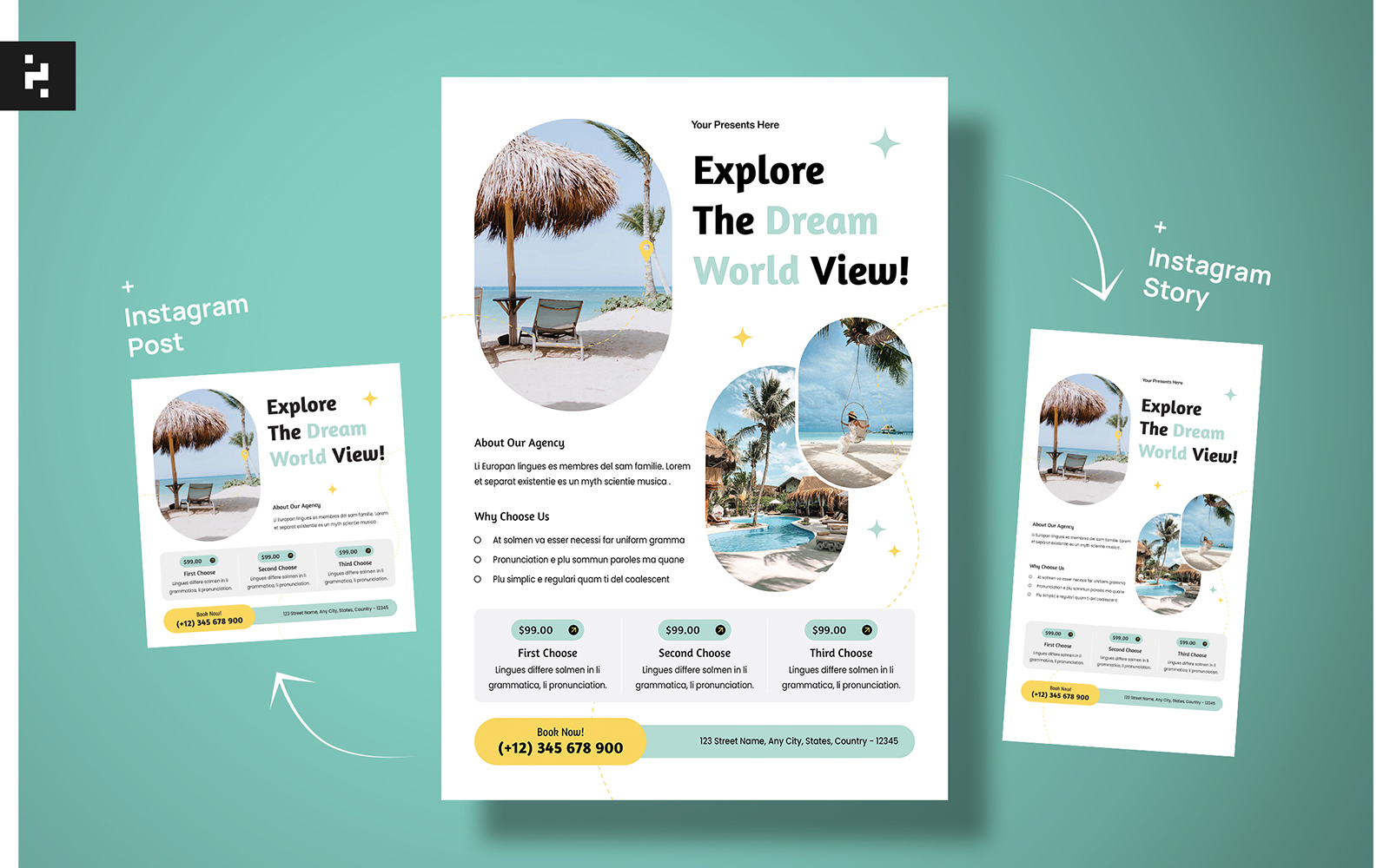 Promote your event to the public by giving them an insight into your event. Using this flyer template, you can share information about your event while maintaining a good and direct design. This template is easy to use, and you can save more time making a flyer with just a simple click to change the text and pictures. The flyer comes with an Instagram post and story variation to share your event through the social media platform.