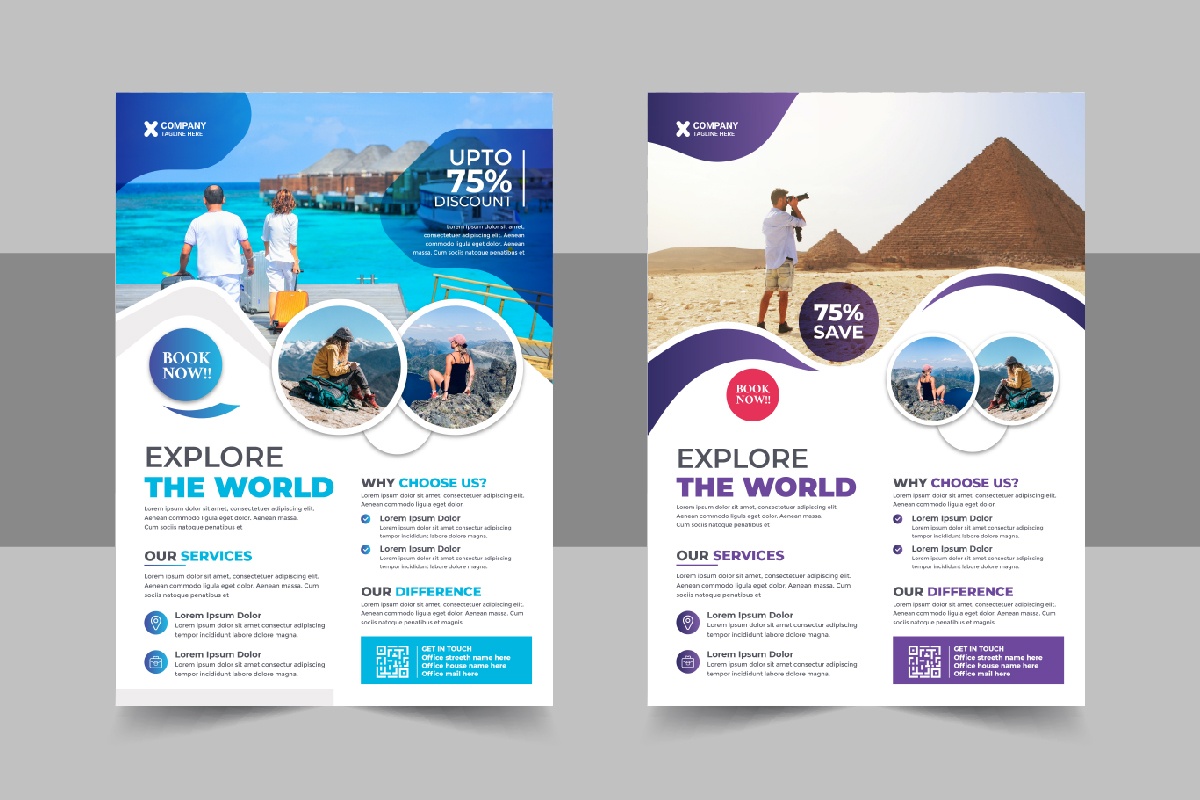 travel holiday flyer design and brochure cover page template for travel agency. All type of Corporate business company, agricultural Company, Home Sale, Land Sale or other property selling company could use this travel holiday flyer design and brochure cover page template for travel agency