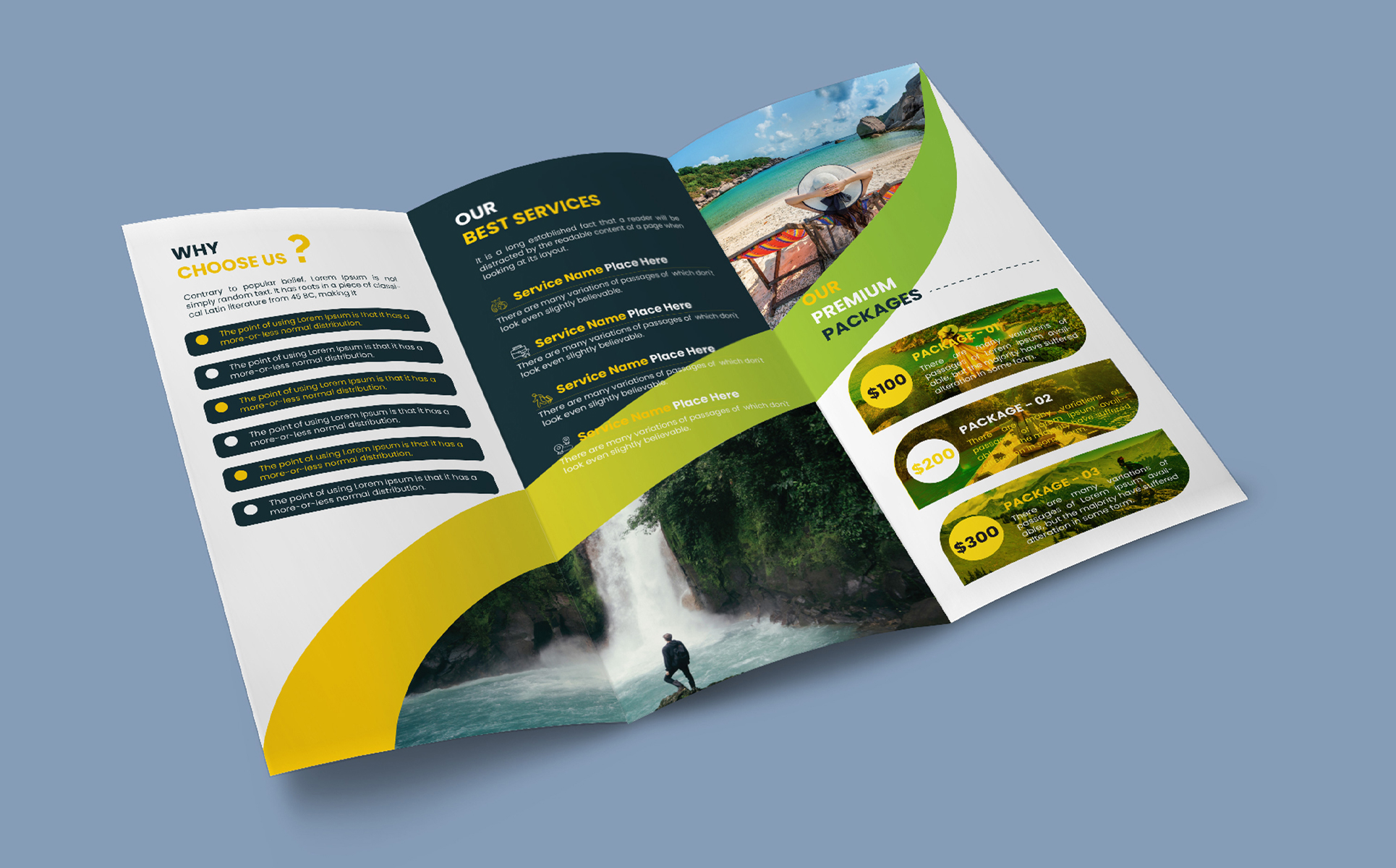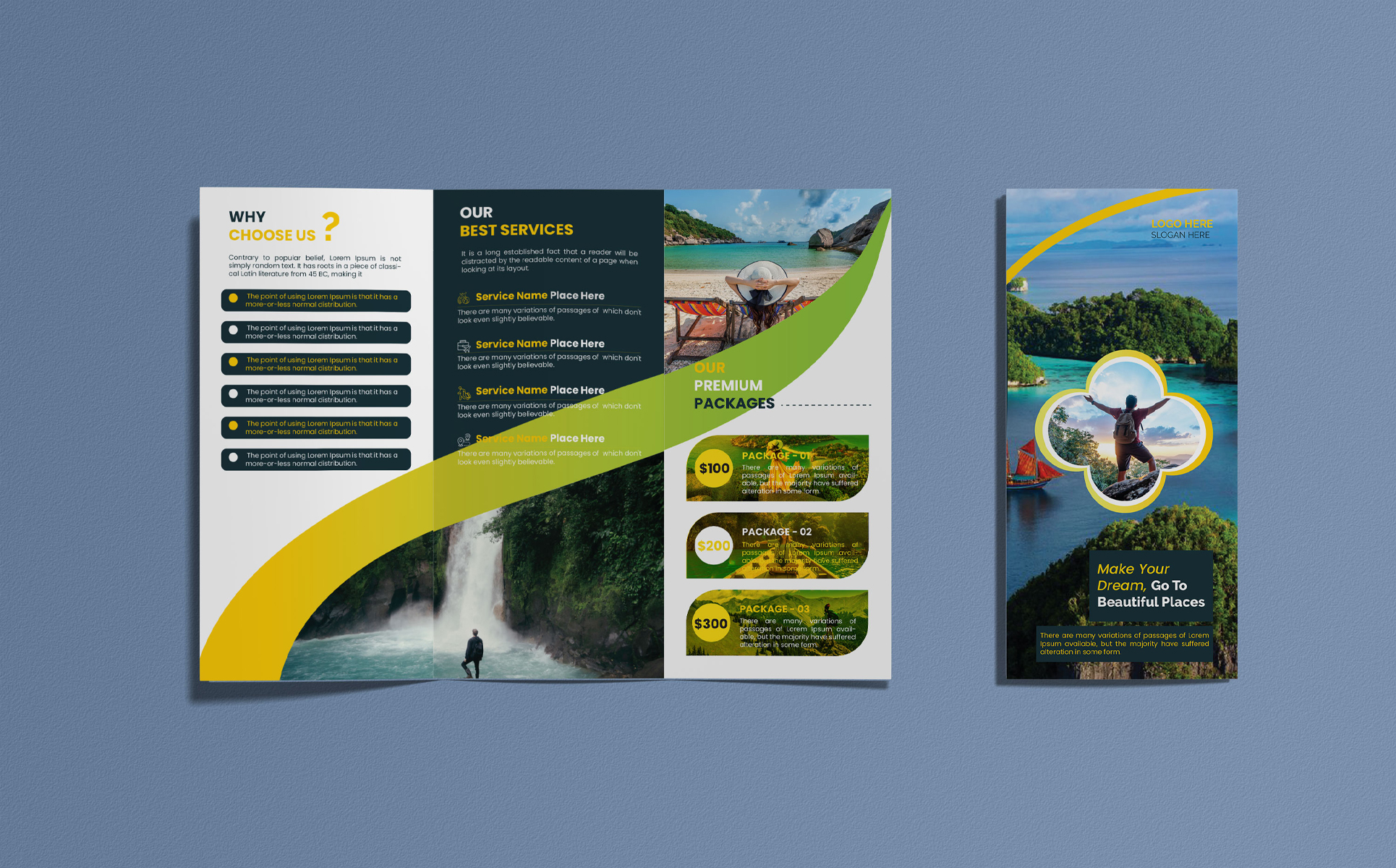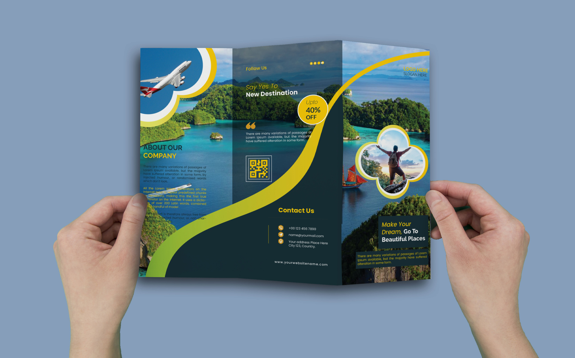 Make your travel promotions unforgettable with this stylish and functional brochure design!