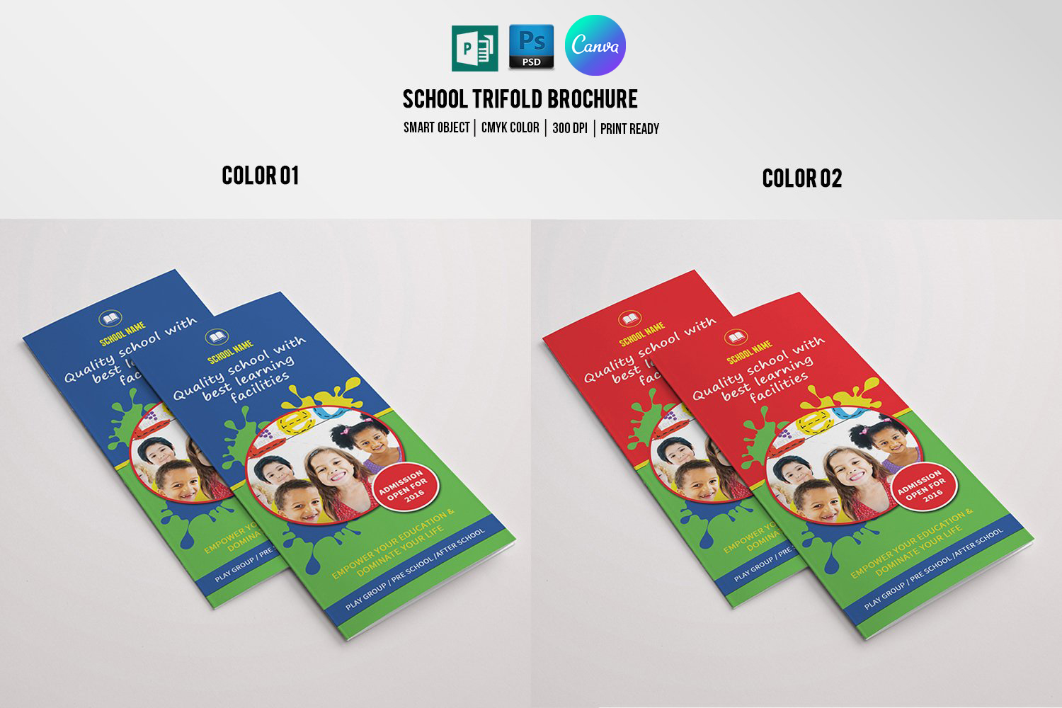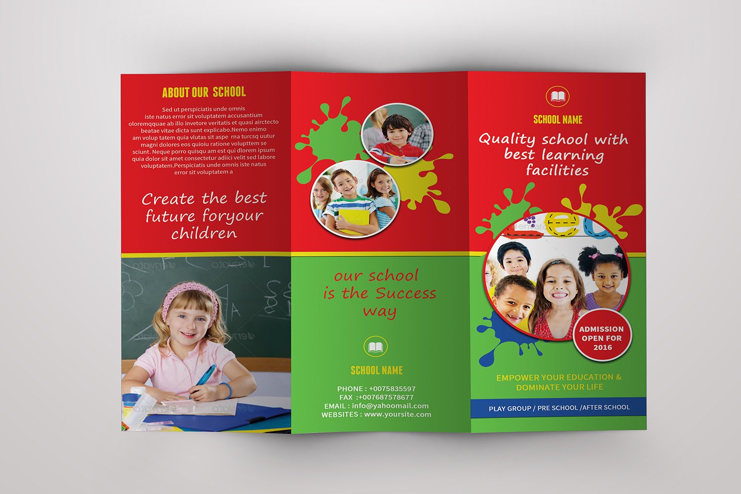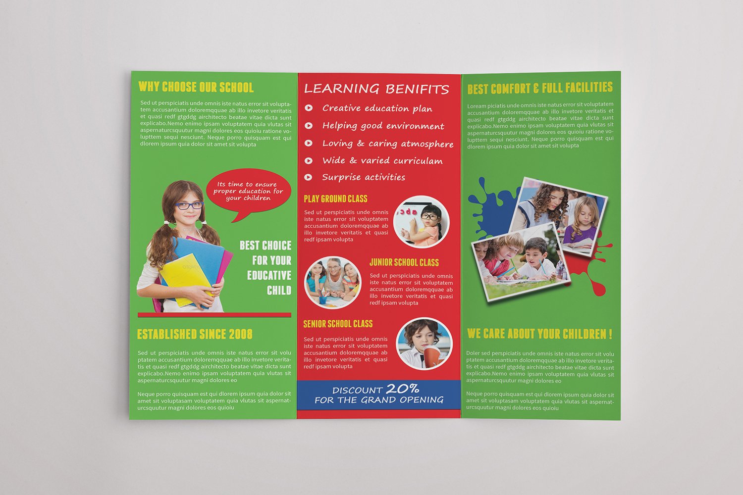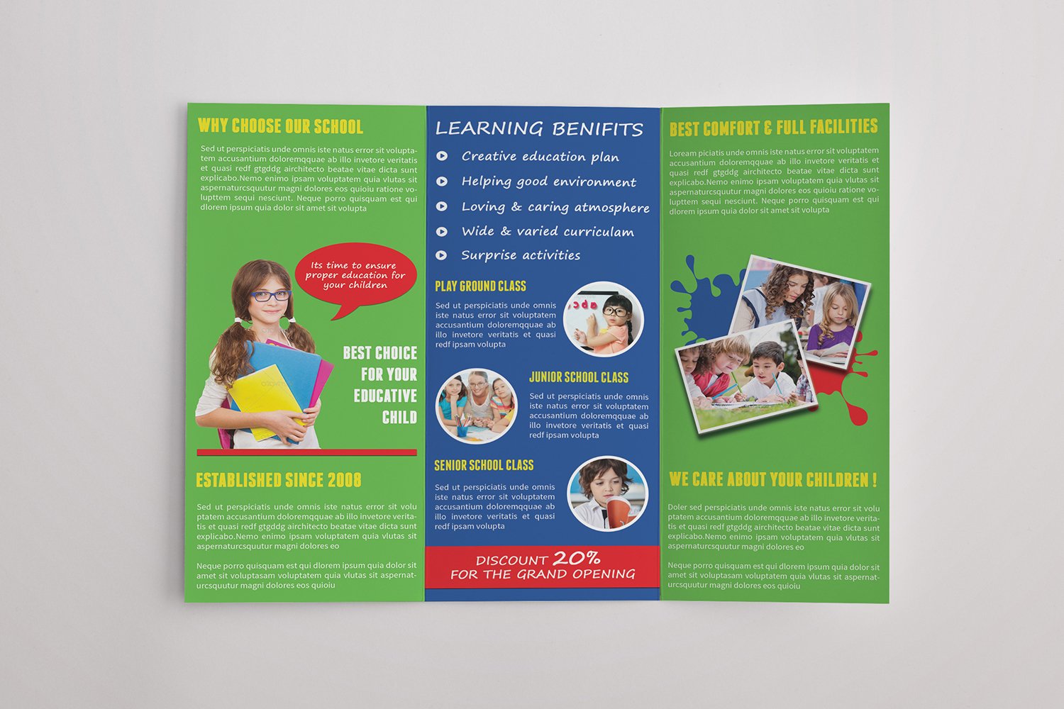 Modern school admission trifold brochure template ideal for promoting educational programs, enrollment details, and academic opportunities with a clean design.