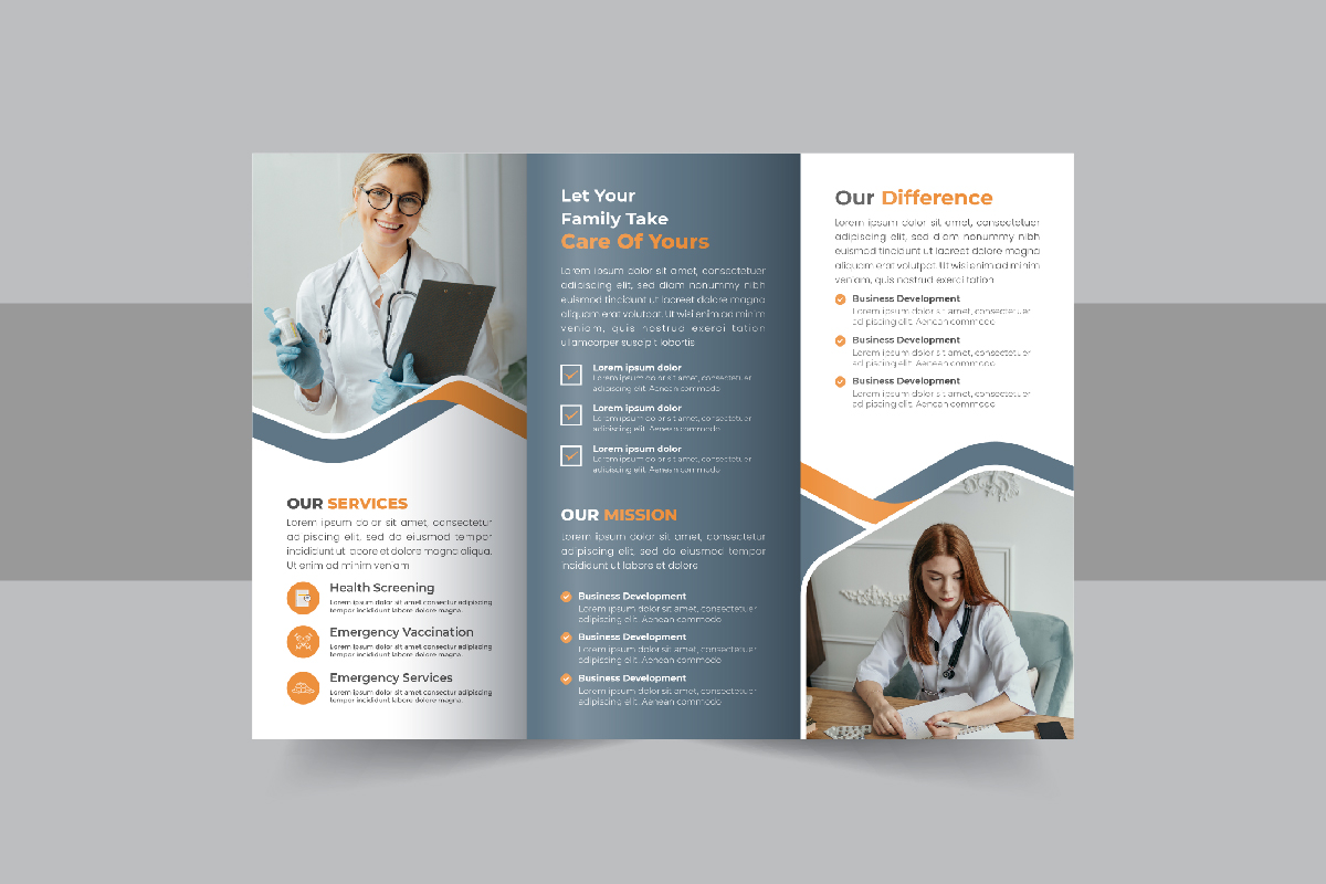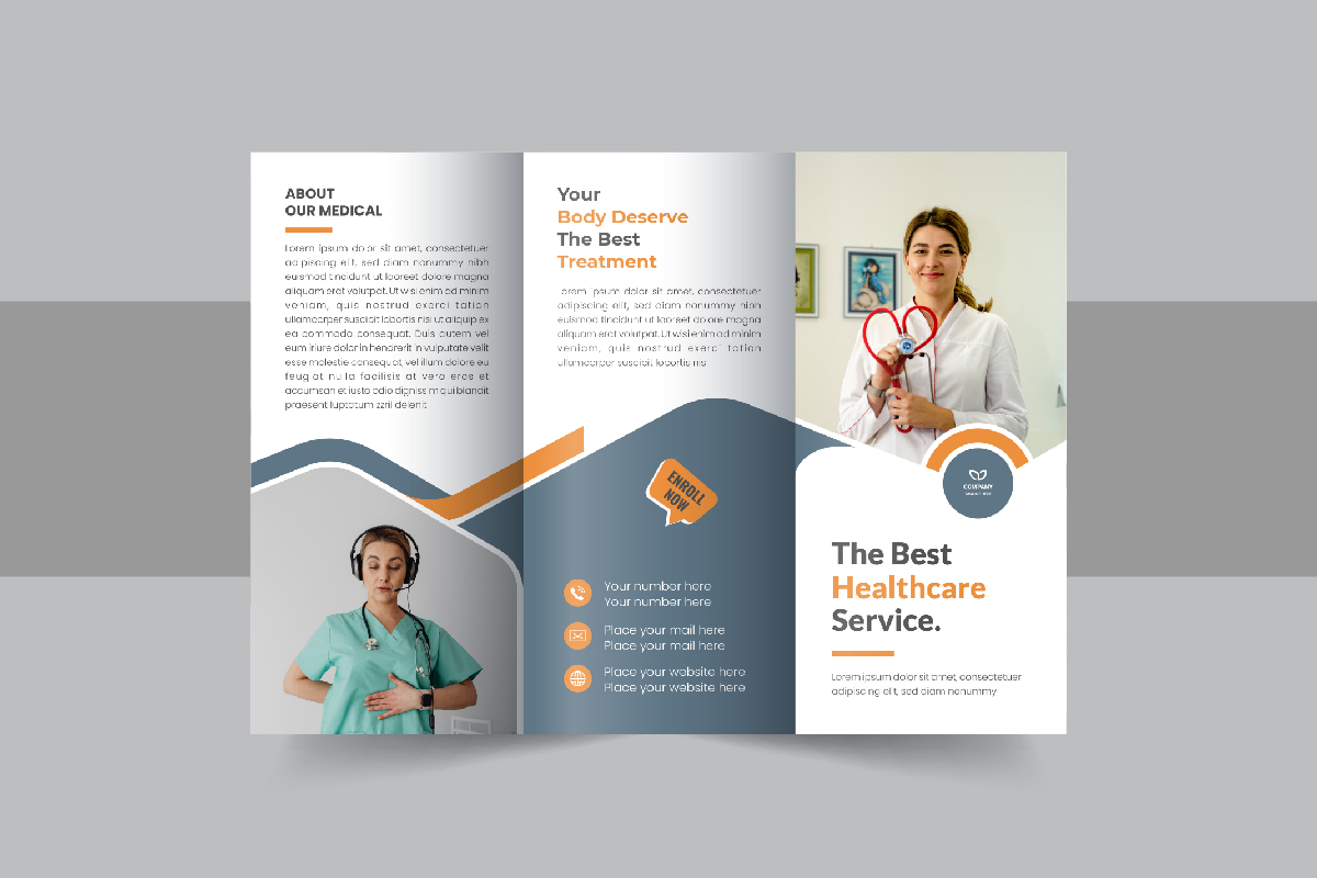 Hospital medical or healthcare trifold brochure, Business or company trifold brochure template design. All type of Corporate business company, agricultural Company, Home Sale, Land Sale or other property selling company could use this Hospital medical or healthcare trifold brochure, Business or company trifold brochure template design