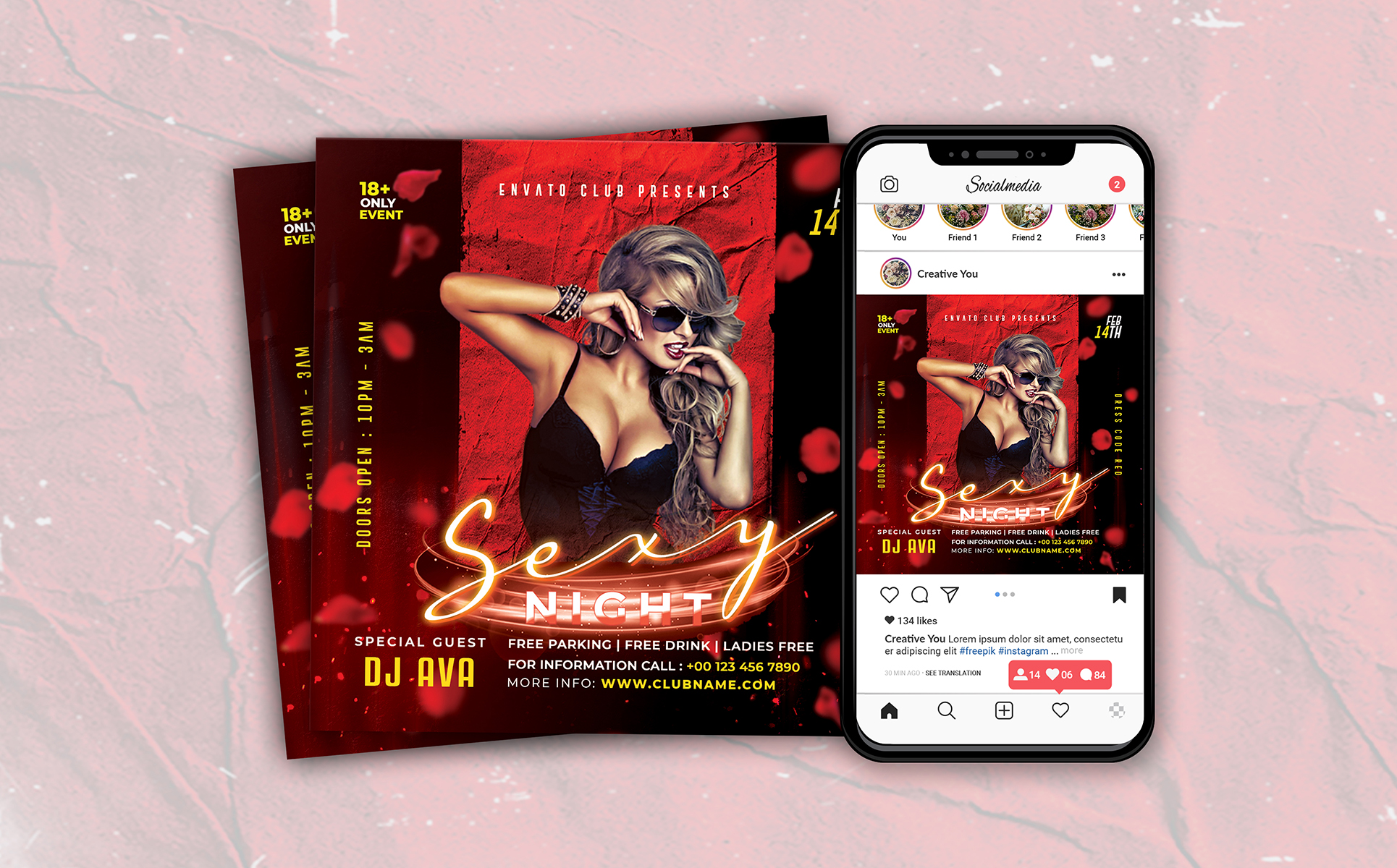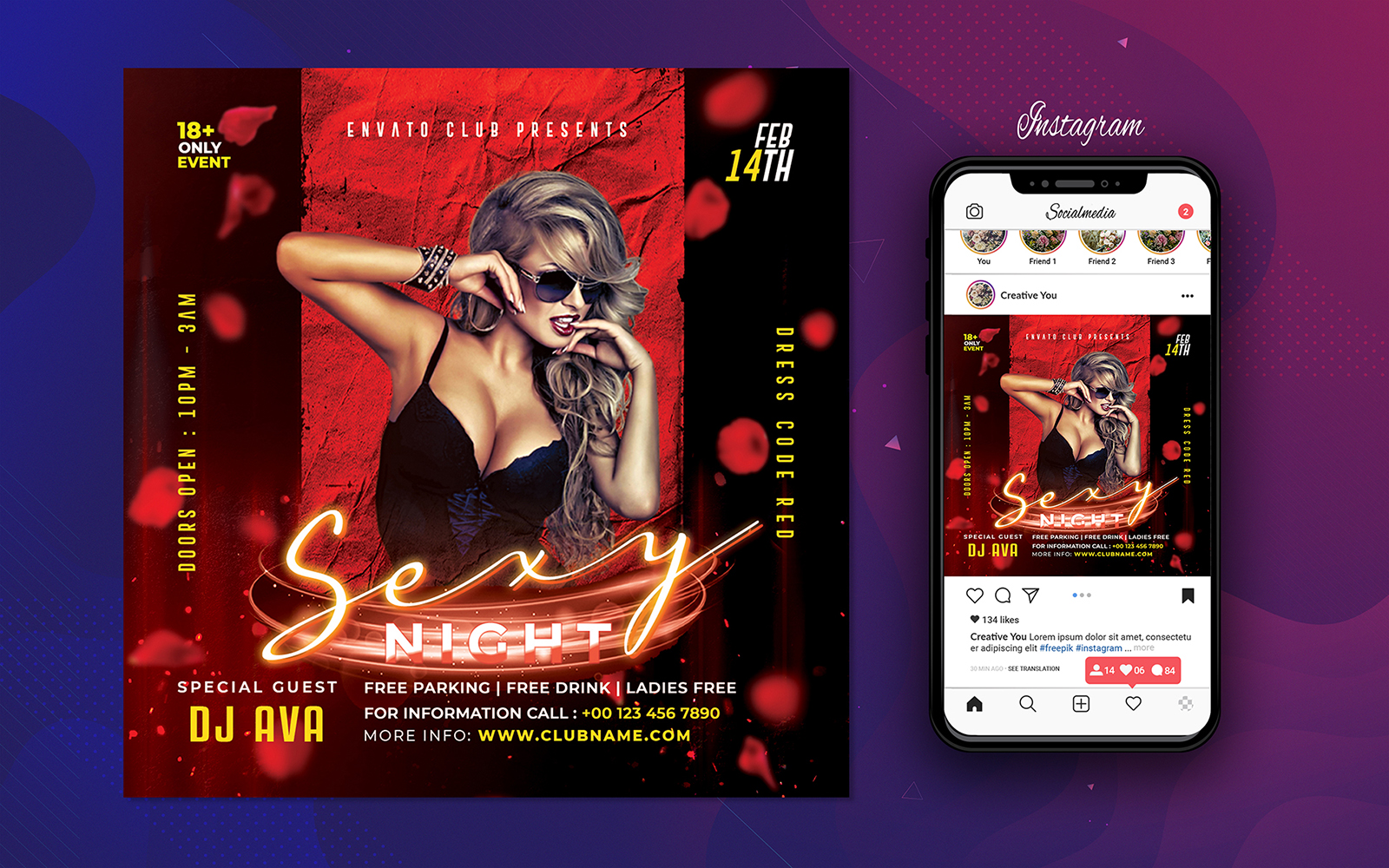 Valentine Party Flyer Template is very modern PSD flyer that will be the perfect invitation for your Valentines event or Club party! All elements are in individual layers and the text is fully editable!