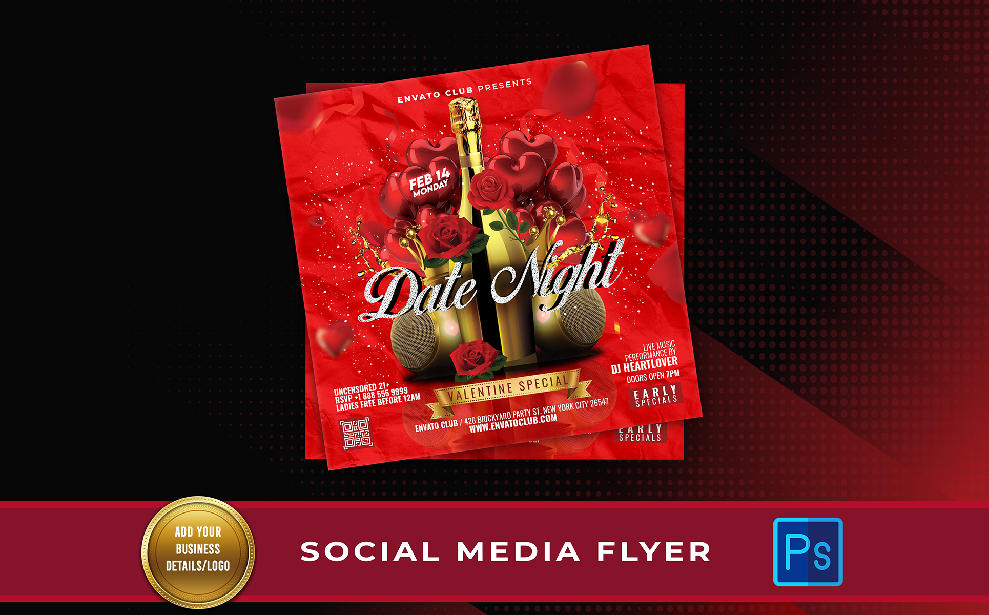 Valentine Party Flyer Template PSD. Fully customizable party flyer template for Photoshop. Easy to use and fully customizable. Buy this template now and start using it. Shorten your working time.