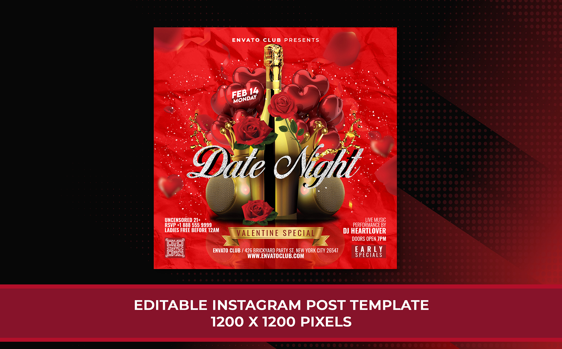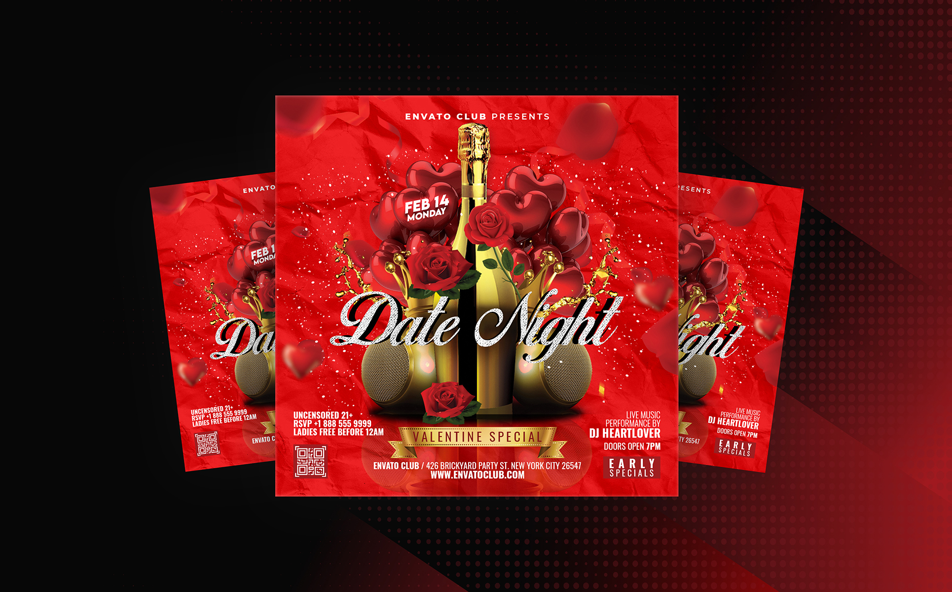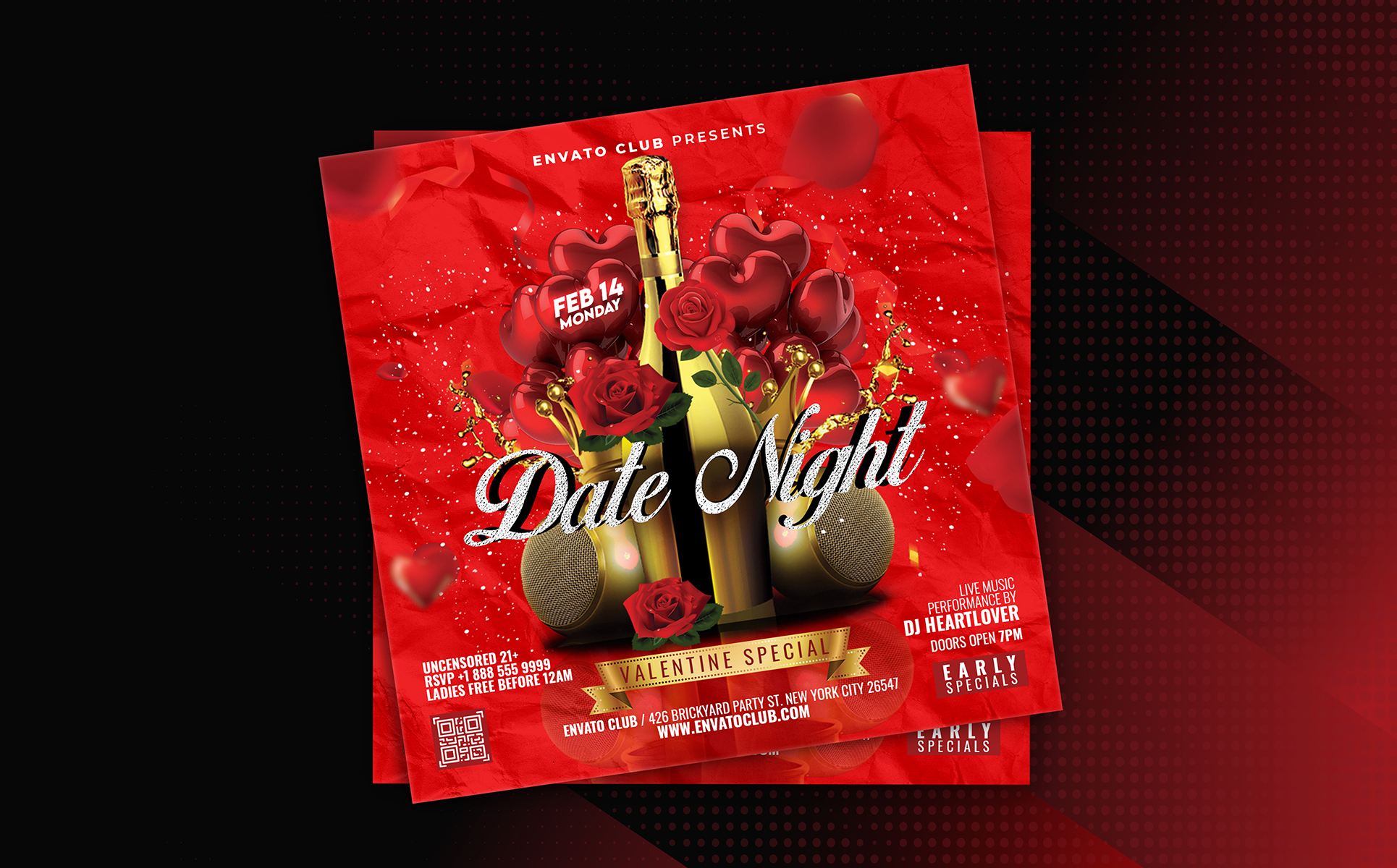 Valentine Party Flyer Template is very modern PSD flyer that will be the perfect invitation for your Valentines event or Club party! All elements are in individual layers and the text is fully editable!