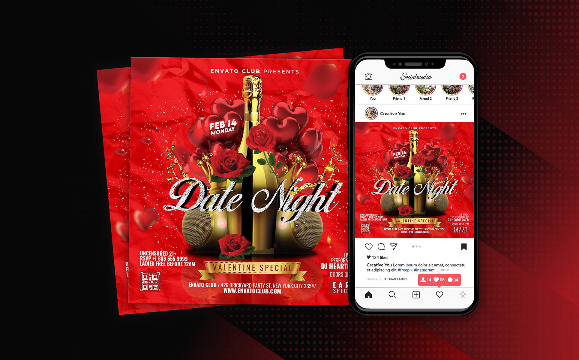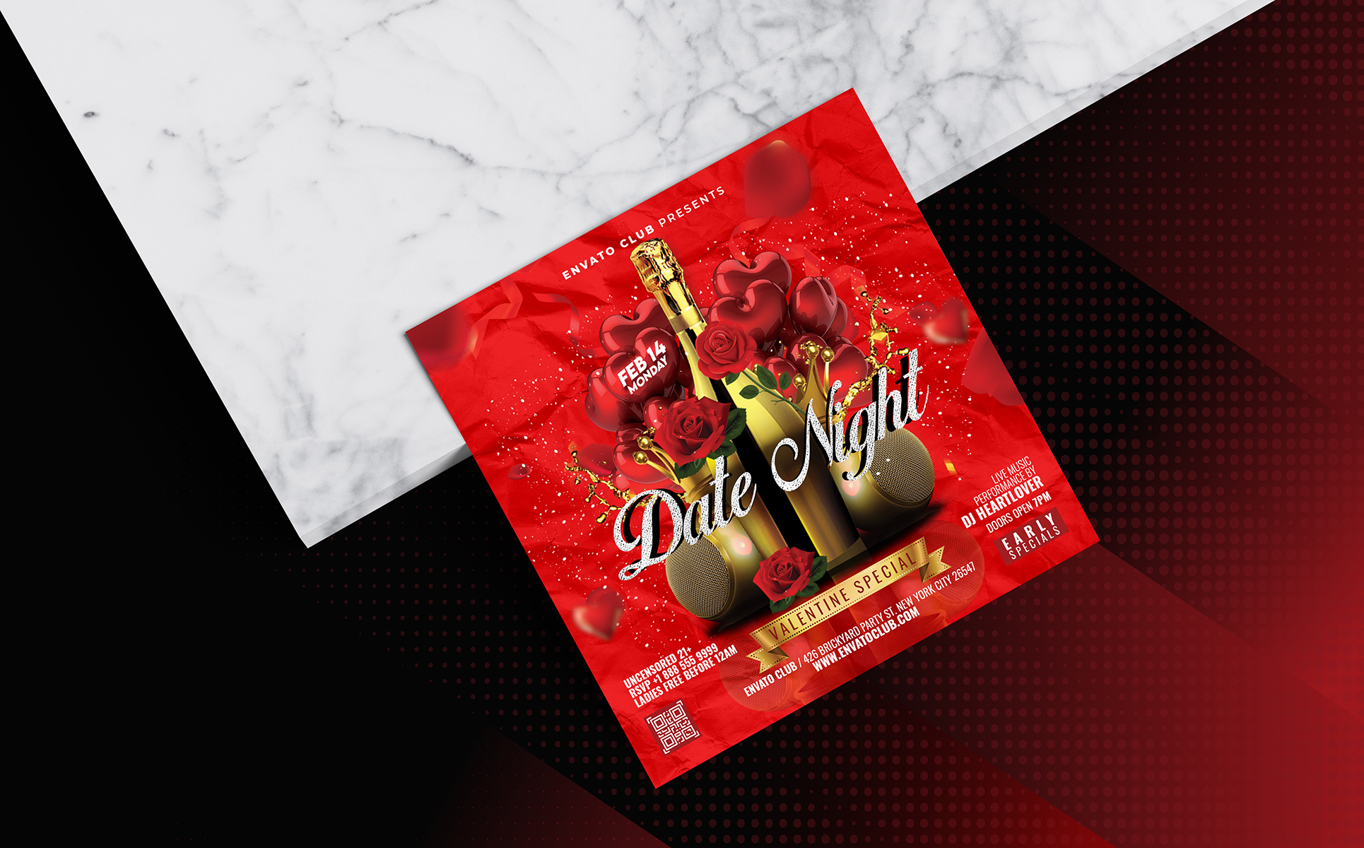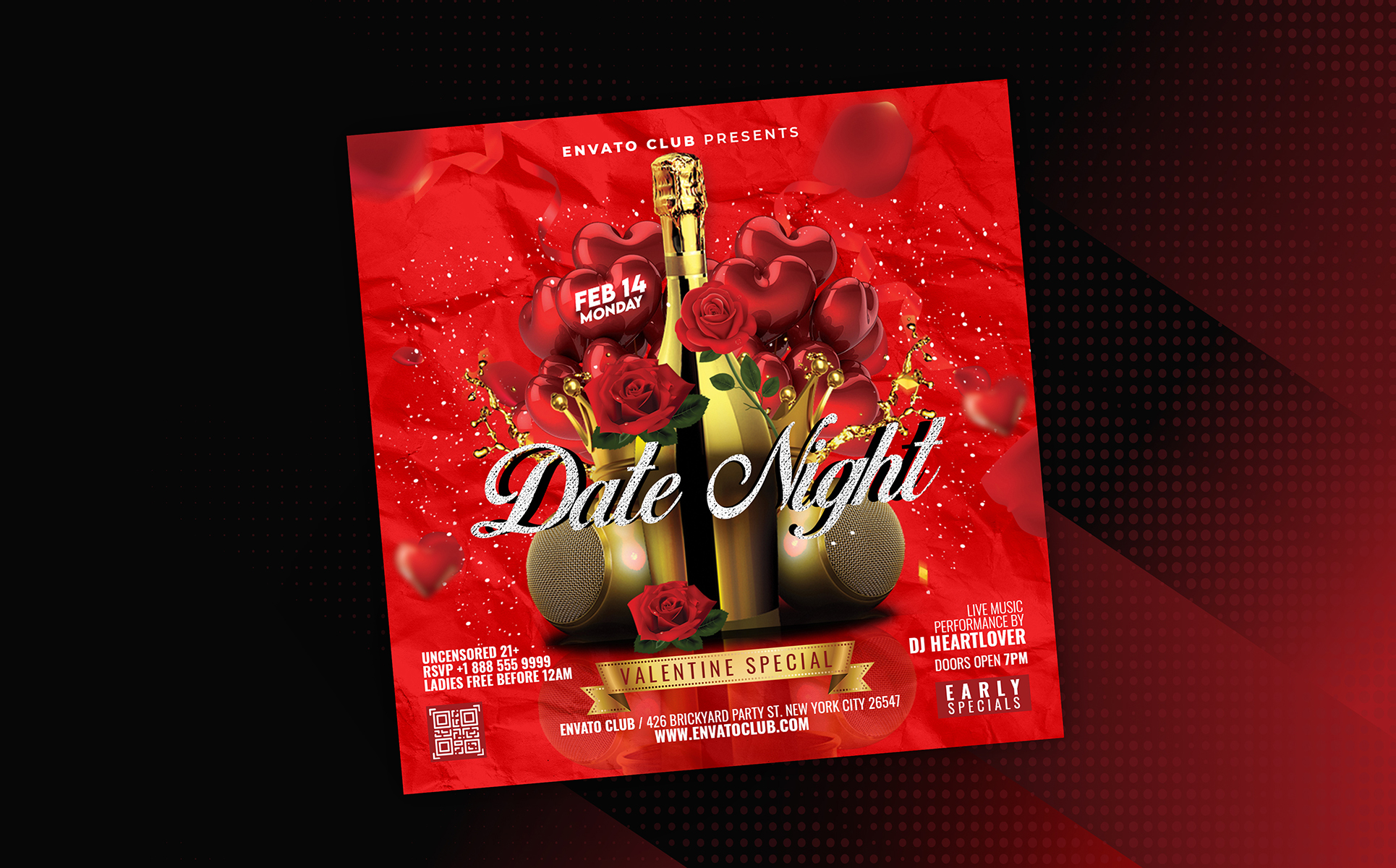 Valentine Party Flyer Template is very modern PSD flyer that will be the perfect invitation for your Valentines event or Club party! All elements are in individual layers and the text is fully editable!