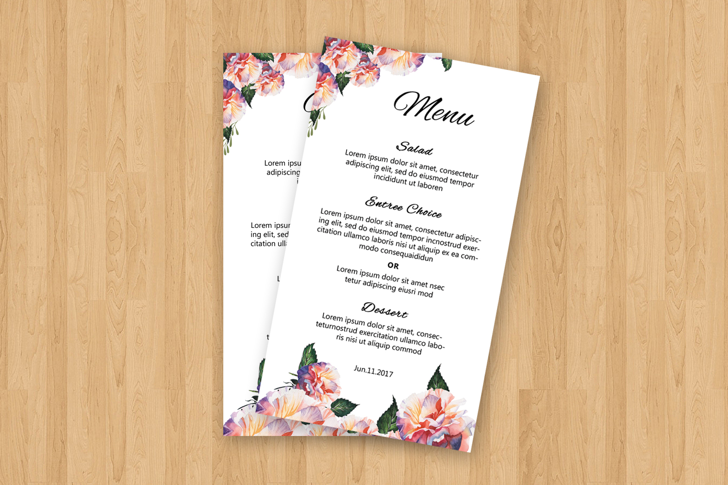 Wedding Menu Card Template, Ms Word and Photoshop Corporate Identity